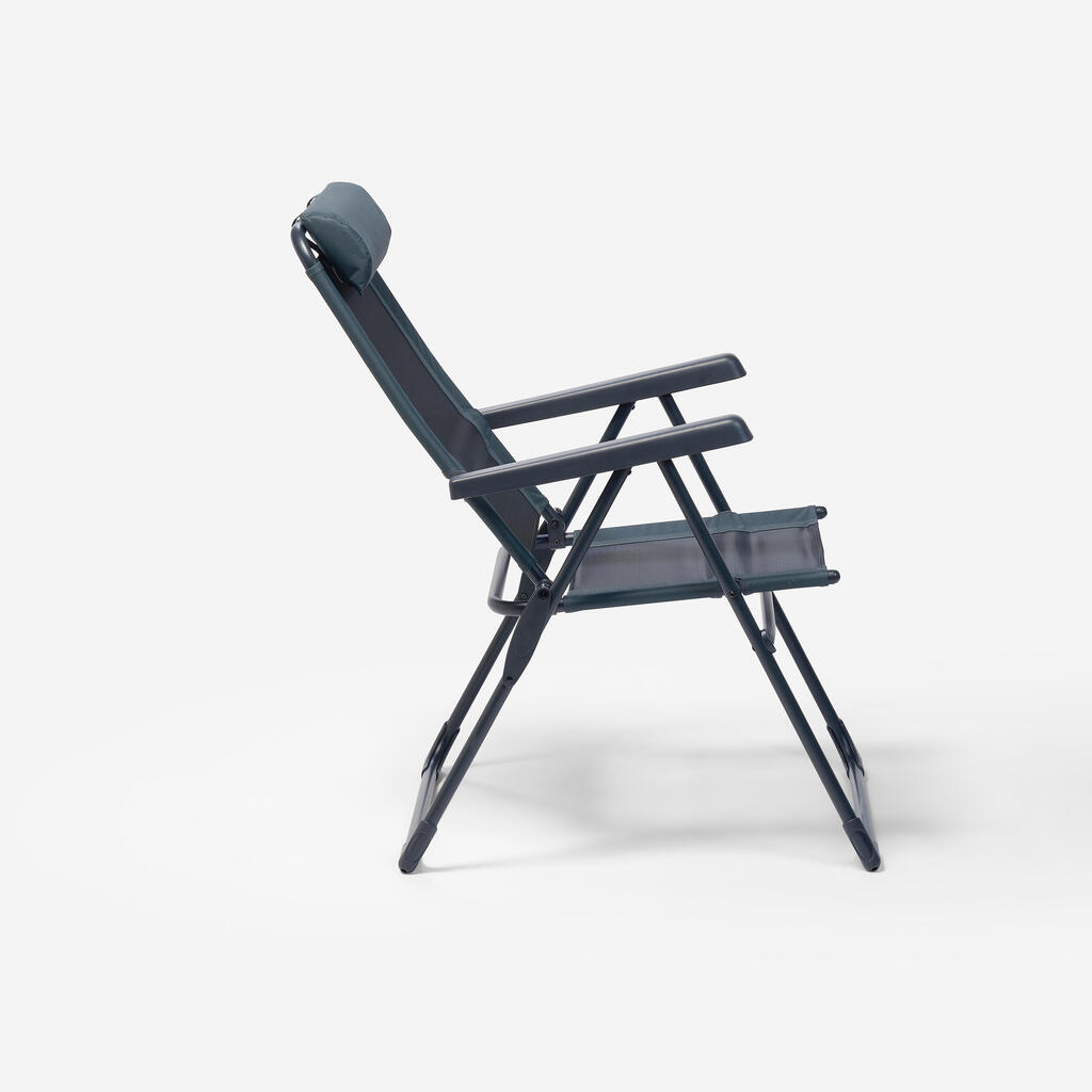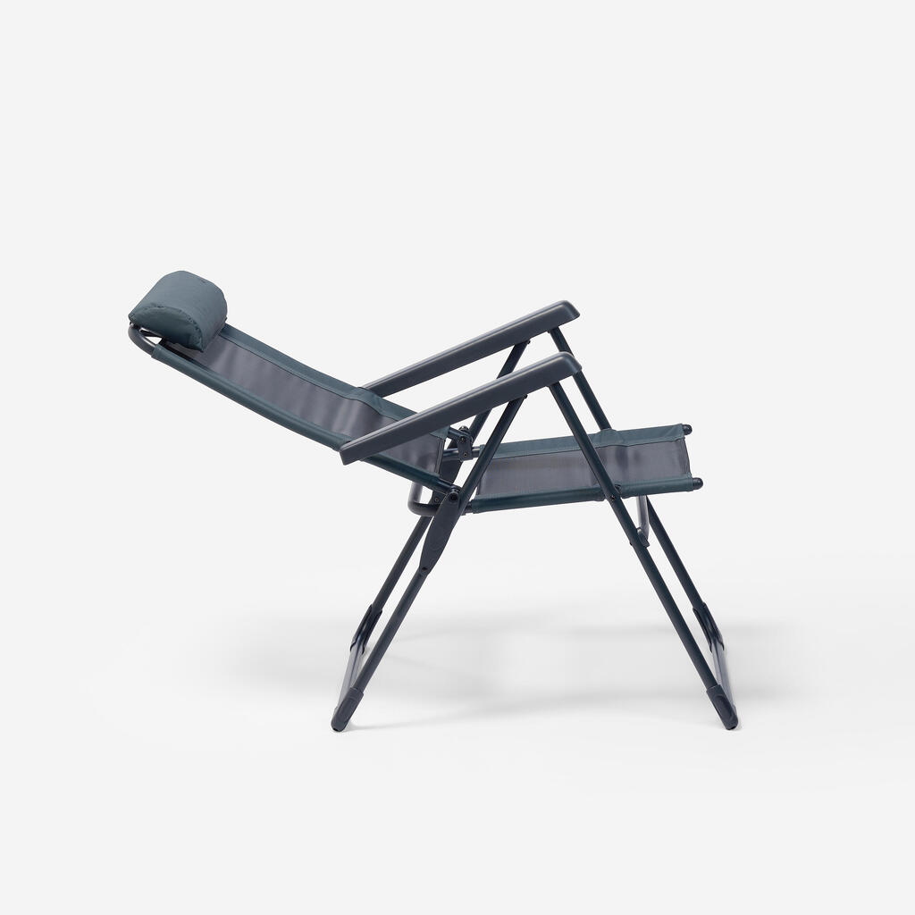 Razprostrite naslonjalo za hrbet in sedež, da bodo noge stabilne. Dvignite naslona za roke za izbiro naklona hrbtnega naslonjala. Nazadnje pritisnite na naslona za roke za ohranitev izbranega položaja. Naslon za glavo je nastavljiv s pomočjo paščkov z zankami.