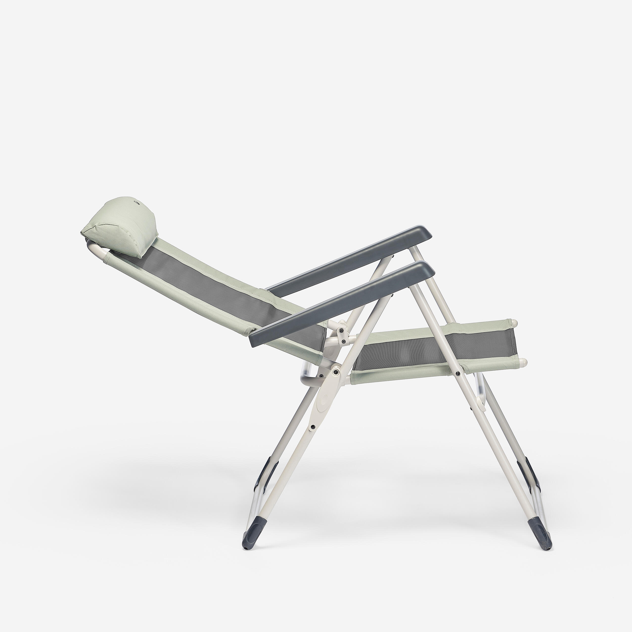 Razprostrite naslonjalo za hrbet in sedež, da bodo noge stabilne. Dvignite naslona za roke za izbiro naklona hrbtnega naslonjala. Nazadnje pritisnite na naslona za roke za ohranitev izbranega položaja. Naslon za glavo je nastavljiv s pomočjo paščkov z zankami.
