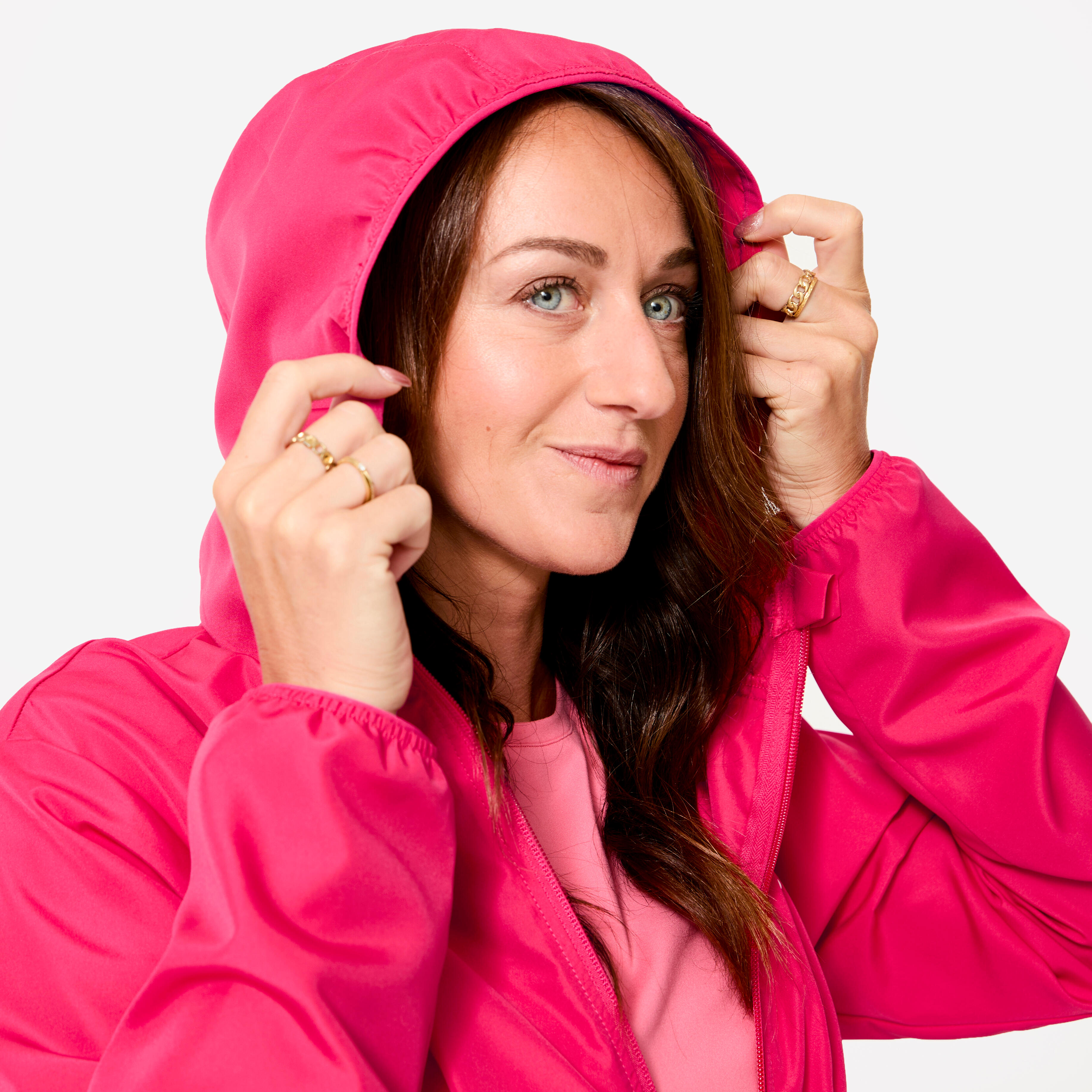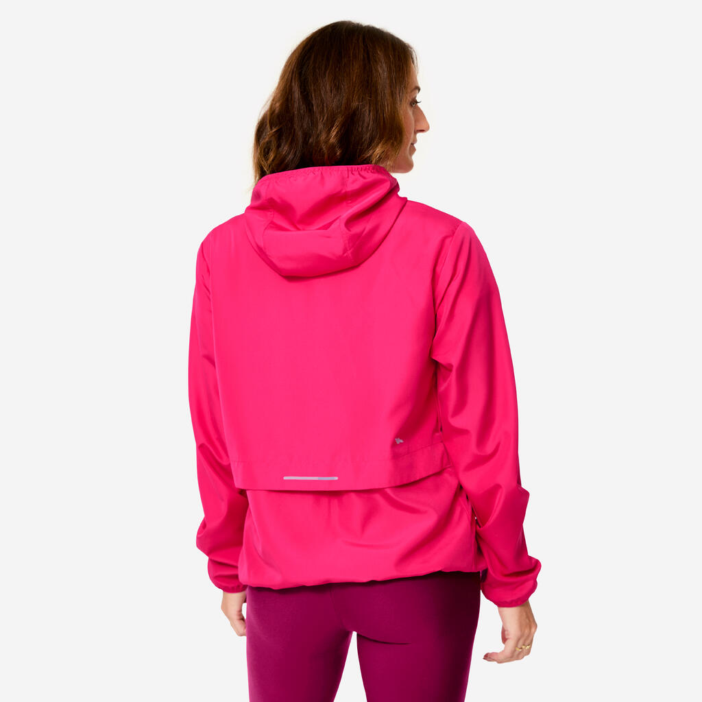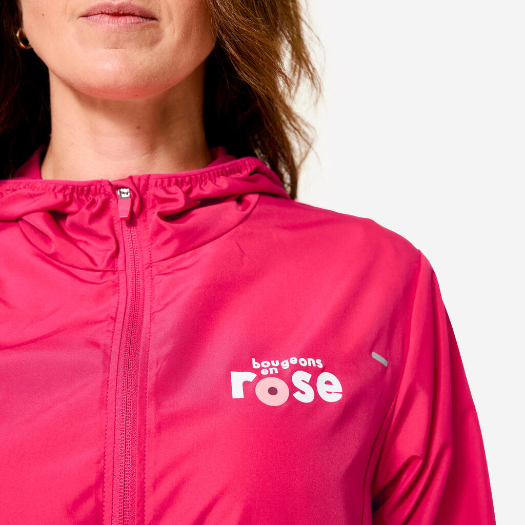 Ženska vetroodporna tekaška jakna Run 100, omejena izdaja "Bougeons en rose"
