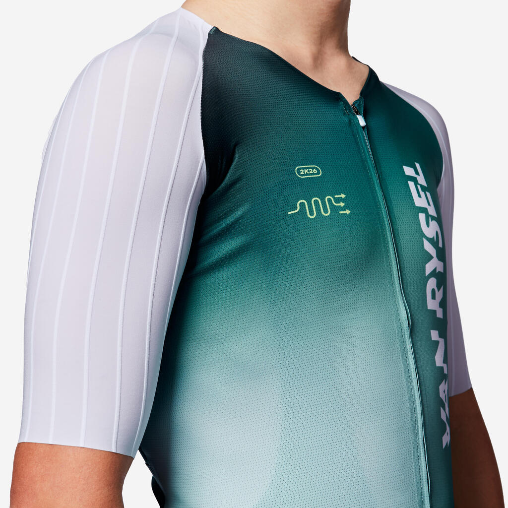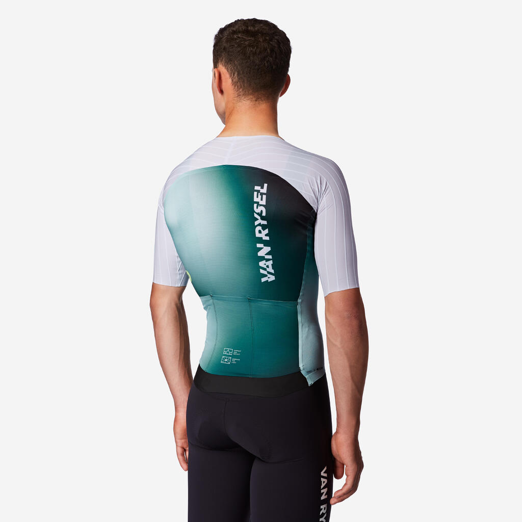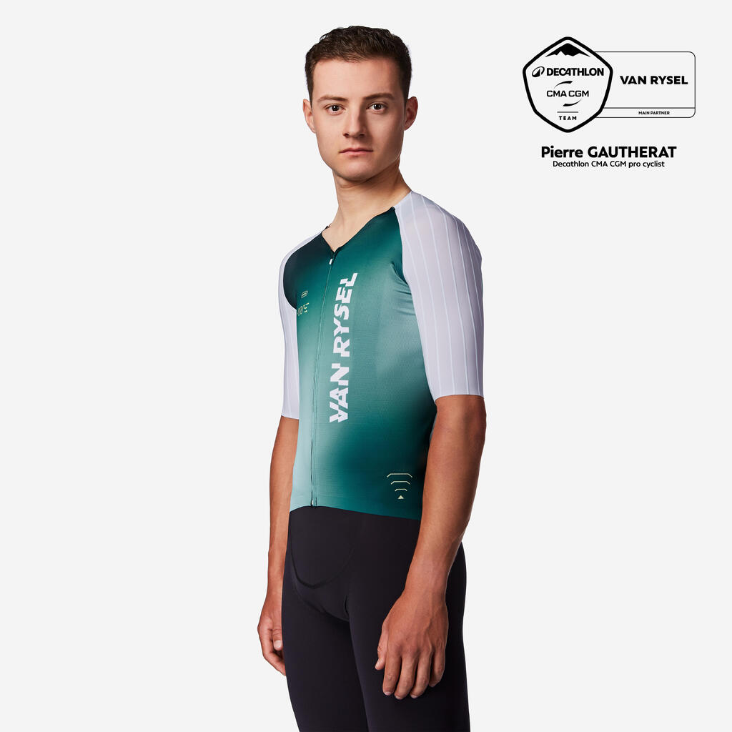Ta majica RCR-F, ki so jo preizkusili in odobrili kolesarji, ponuja vse potrebne lastnosti za najvišjo raven zmogljivosti. Po začetku sodelovanja leta 2024, ki se je začelo s kolesi, čeladami in očali VAN RYSEL in ekipa DECATHLON CMA CGM zdaj sodelujeta tudi na področju tehnične opreme.