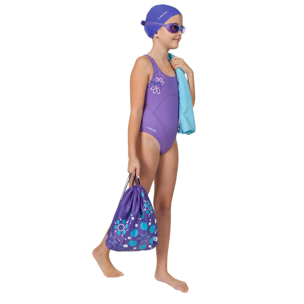 Komplet za mlade plavalce. Odlična izbira za plavanje. Komplet vsebuje kopalke, plavalno kapo, plavalna očala in brisačo. Priložena je tudi vrečka za shranjevanje opreme.