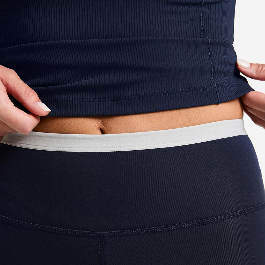 Kontrastni trakovi potekajo navpično navzdol po stegnih in ustvarjajo grafične linije, ki vizualno strukturirajo pajkice. Te črte niso le moden detajl: Optično podaljšajo nogo z ustvarjanjem navpične kontinuitete. Barvni kontrast potegne pogled navzdol in zoži postavo. Te linije so navdihnjene z videzom vintage športnih oblačil, hkrati pa ostajajo odločno moderne.
