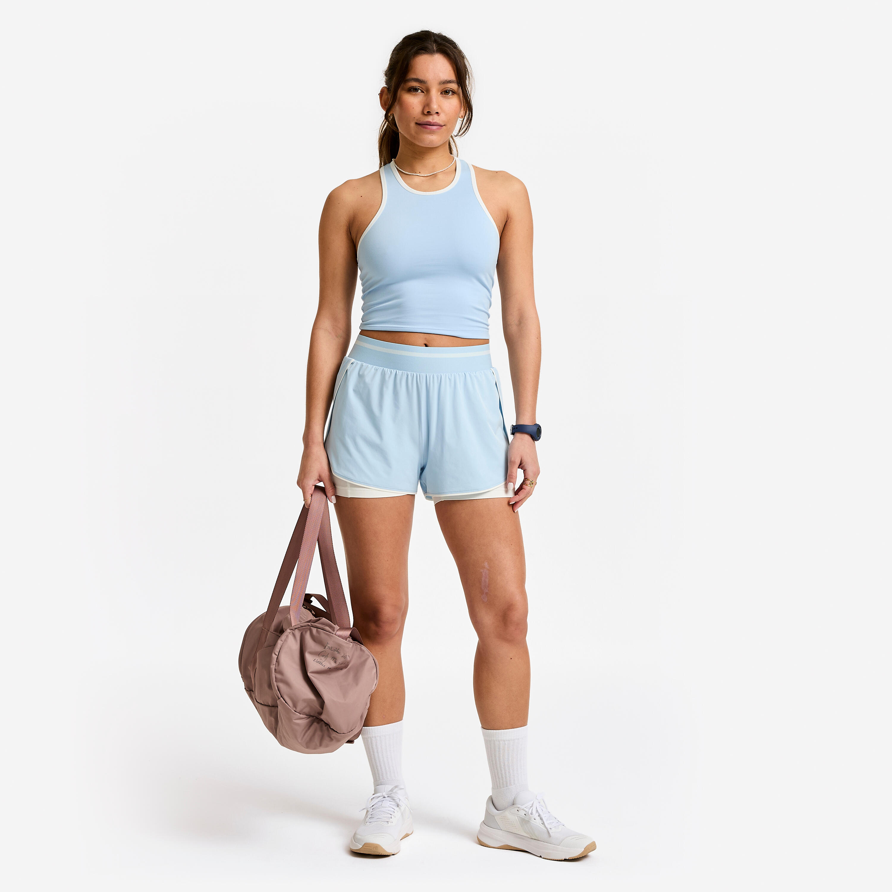 Te dvoslojne kratke hlače združujejo zmogljivost in eleganco. Za tiste, ki iščejo varnost in svobodo, v slogu, ki ga navdihujejo športi z loparji.