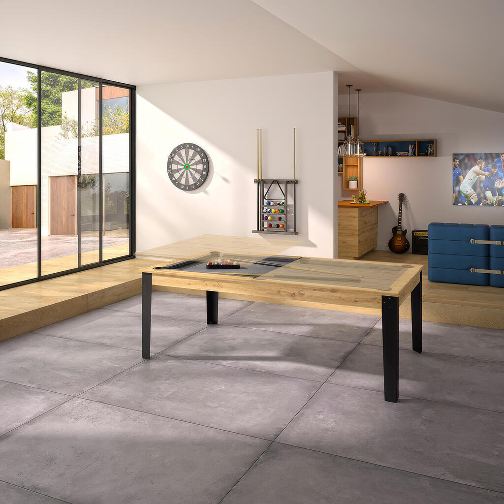 Biljardna miza Regal, razvita ekskluzivno za Decathlon, je ponosno izdelana v Franciji pri našem partnerju Renéju Pierru, uglednem specialistu za biljard.Ta francoska zasnova zagotavlja kakovost in strokovno znanje v proizvodnji, s skrbno obdelavo in optimalno vzdržljivostjo, da vam ponudimo biljardno mizo, ki se elegantno zlije z vašim vsakdanjim življenjem.