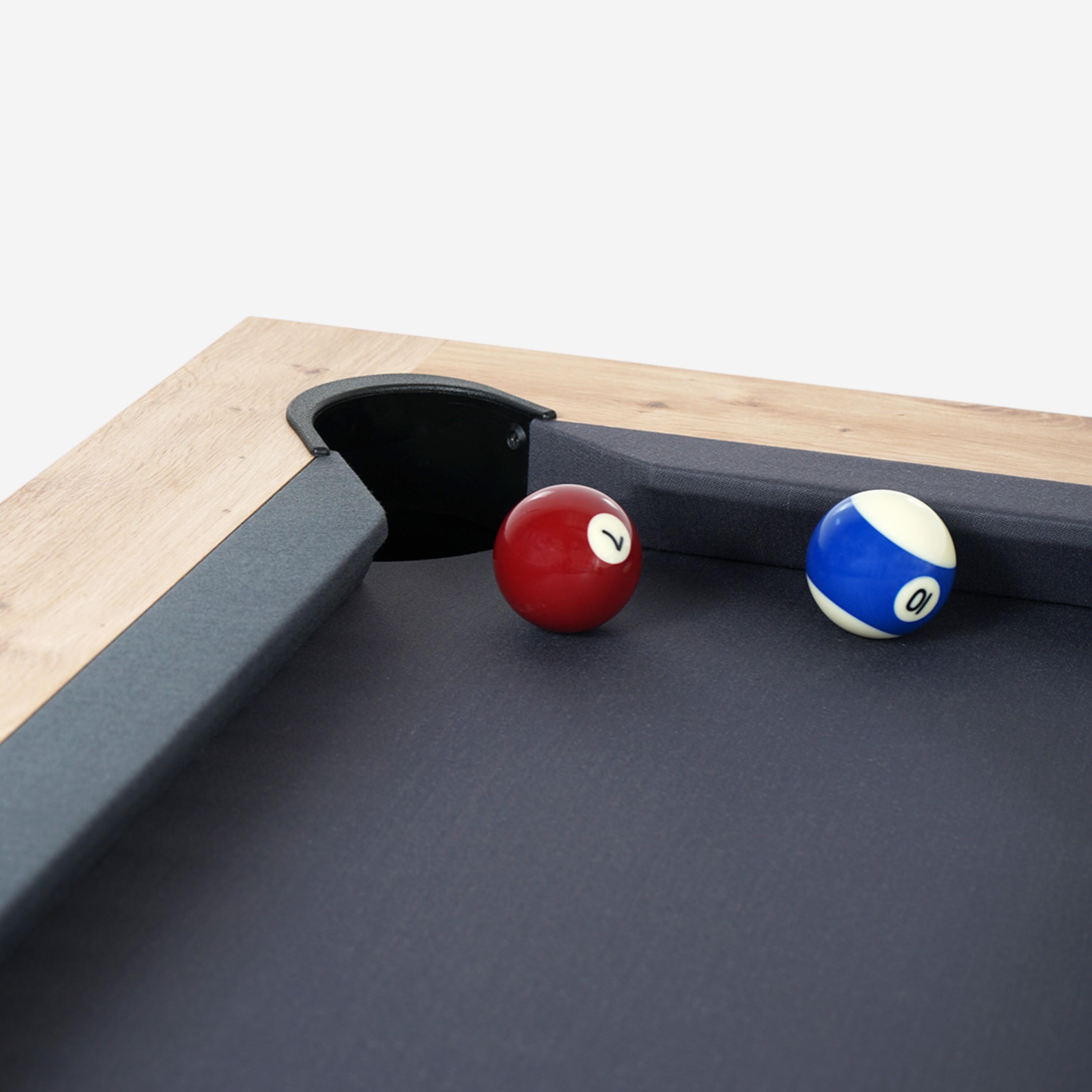 Biljardna miza Elio, razvita ekskluzivno za Decathlon, je ponosno izdelana v Franciji pri našem partnerju Renéju Pierru, uglednem specialistu za biljard.Ta francoska zasnova zagotavlja kakovost in strokovno znanje v proizvodnji, s skrbno obdelavo in optimalno vzdržljivostjo, da vam ponudimo biljardno mizo, ki se elegantno zlije z vašim vsakdanjim življenjem.
