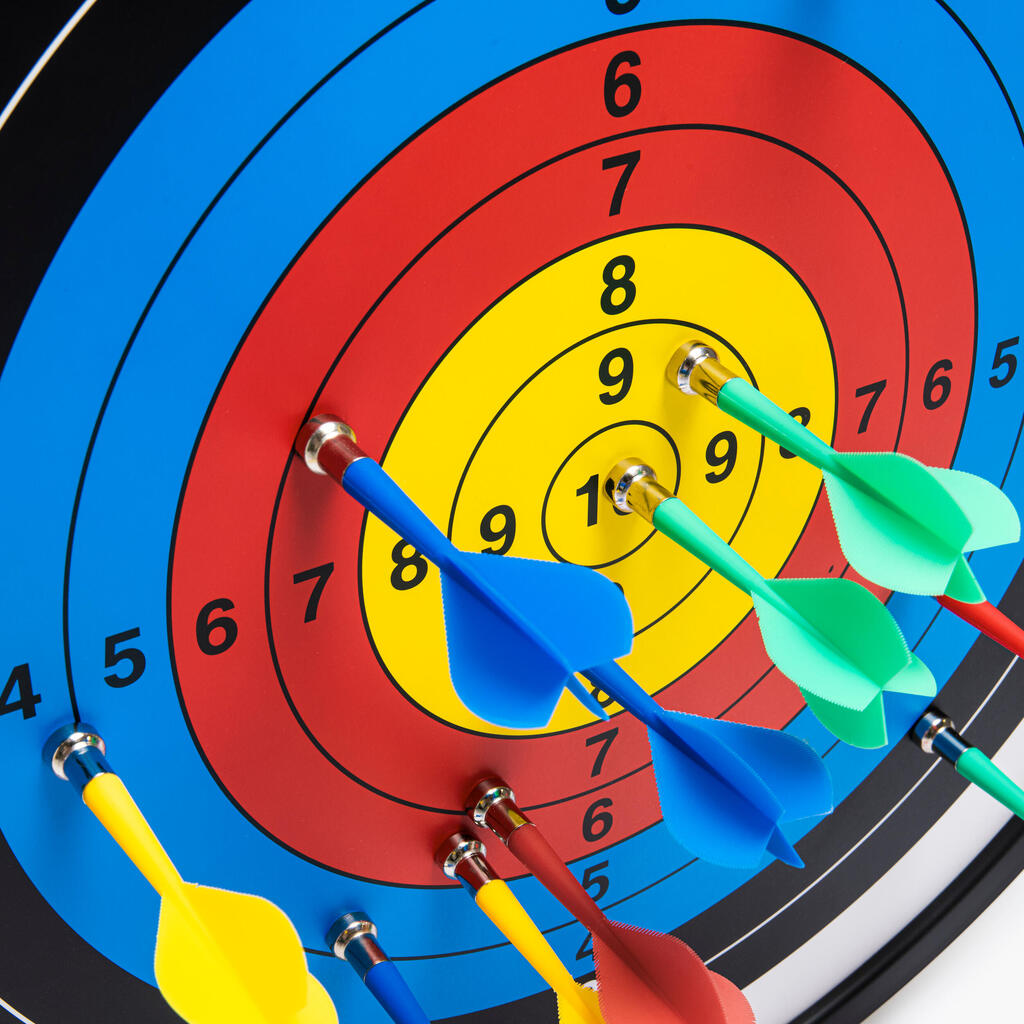 Hitro začnite s to magnetno tarčo za pikado, ki ima priloženih 12 puščic in je dvostranska za raznoliko igro.