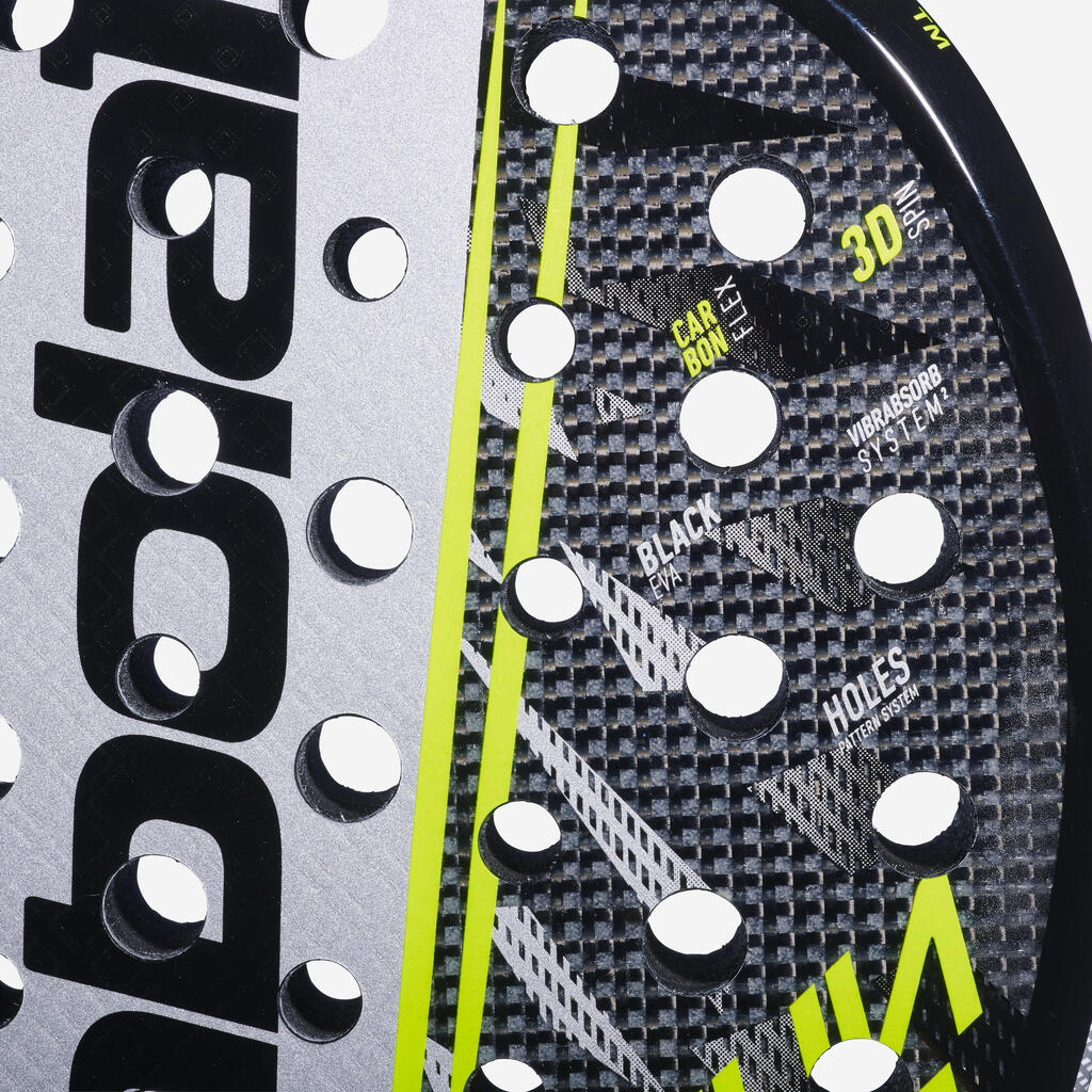Edinstveno tkanje dveh različnih materialov na površini loparja združuje njune prednosti: eksplozivna moč karbona in lahka moč steklenih vlaken. Rezultat je prožna površina, ki nudi dinamično moč brez skrajne togosti povsem karbonske konstrukcije.