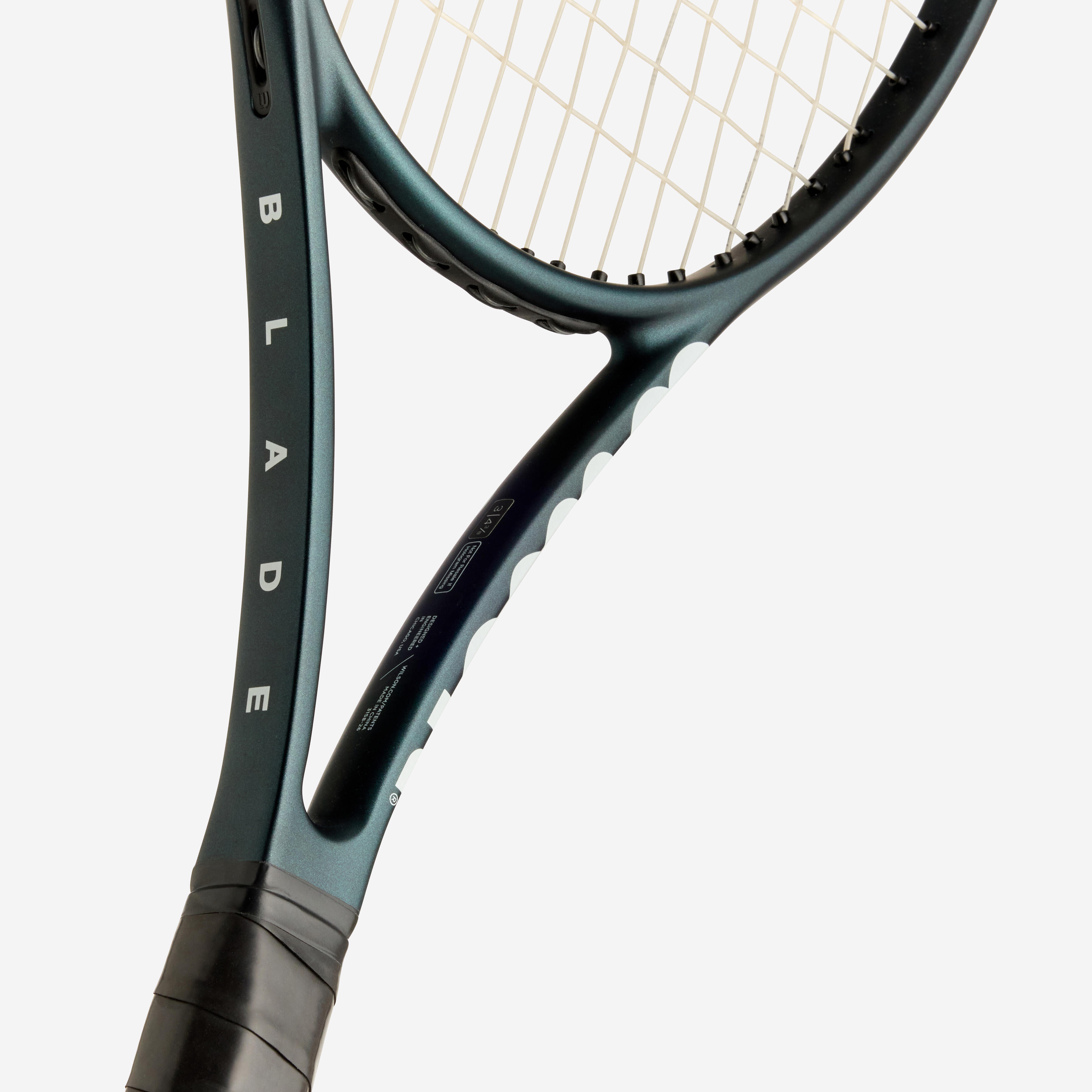 Vzorec strune 18 x 16. Vzorec strune nakazuje število vodoravnih strun krat število vodoravnih strun. Vzorec z več strunami je zaprt vzorec. Vzorec z manj strunami je odprt vzorec. Bolj zaprt vzorec strune omogoča več občutka, vendar manj moči in spina. Bolj odprt vzorec strune omogoča več moči in spin, vendar manj kontrole.