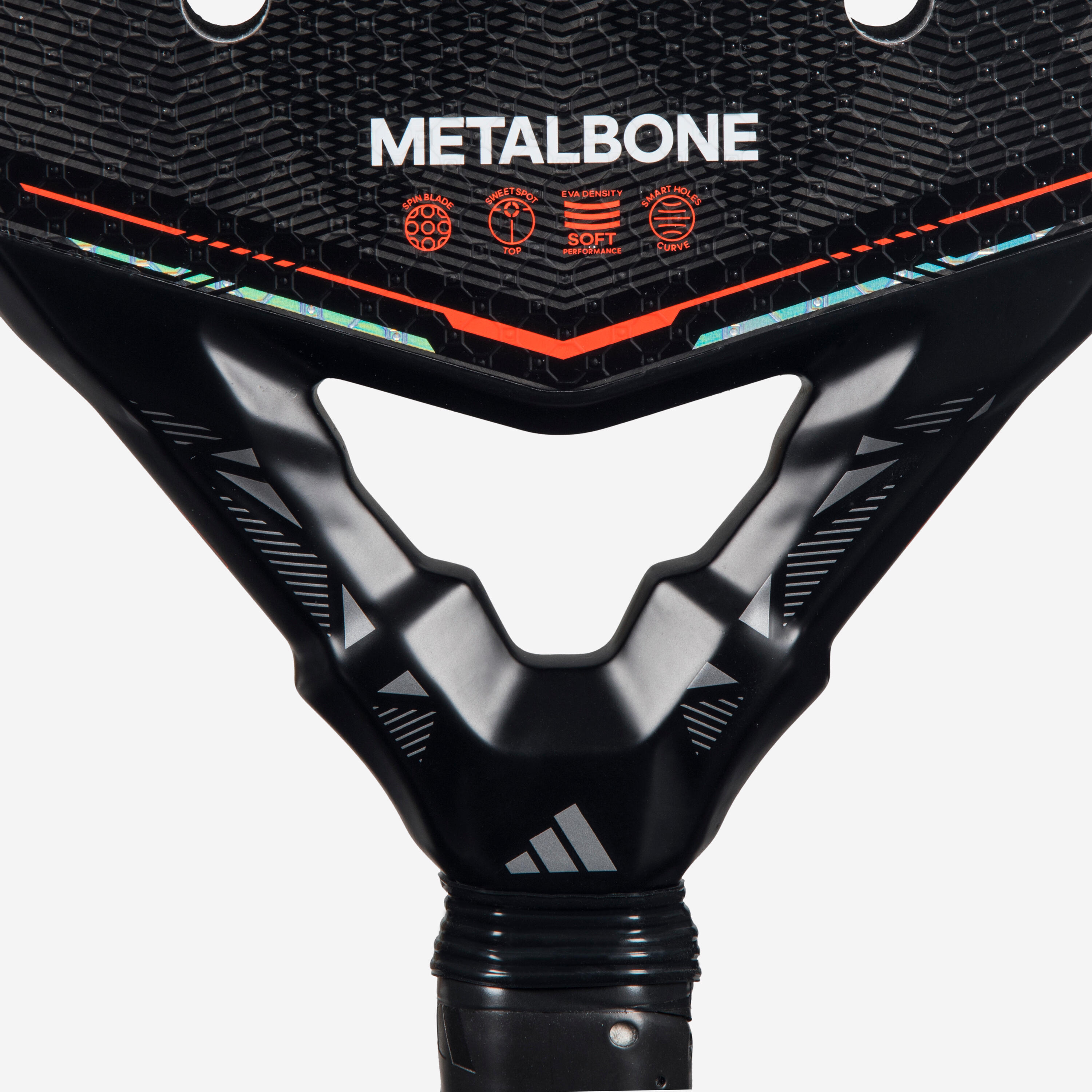 Ekskluzivno za METALBONE poliedrska zasnova okvirja in mostu poveča strukturno togost in zagotavlja večjo moč pri vsakem udarcu.