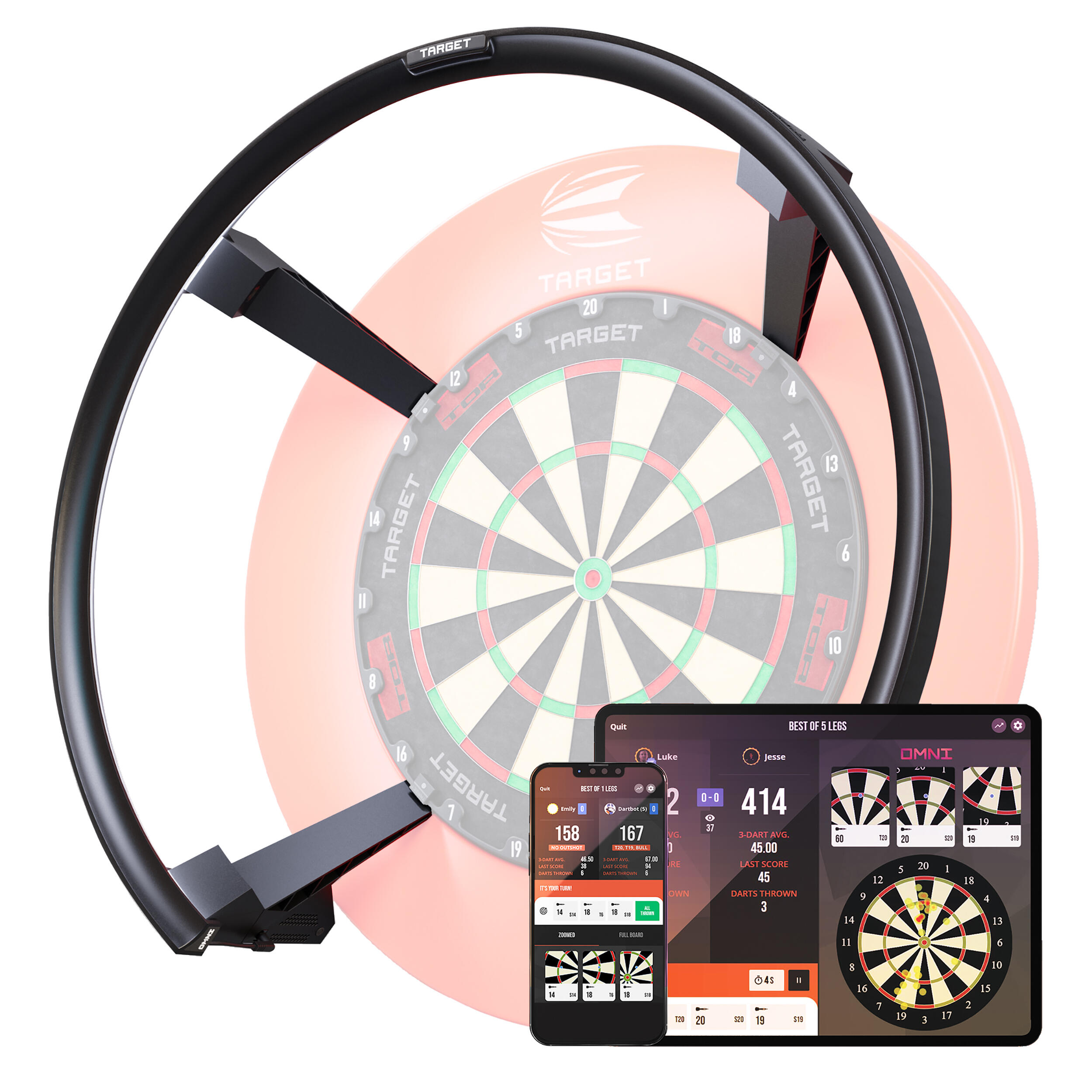 Preobrazite svojo igro pikada.Uživajte v natančnem samodejnem točkovanju in enakomerni 360° osvetlitvi za izboljšano igro.
