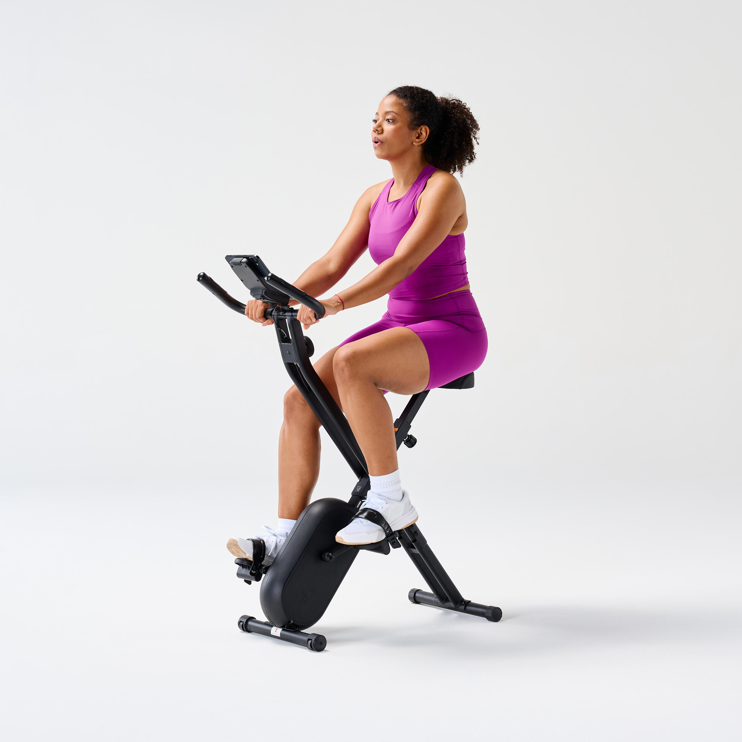 To kolo je bilo še posebno zasnovano za majhne prostore. Je lahko in zložljivo, da ga po vsaki uporabi enostavno pospravite, ne da bi zapolnil vaš prostor. Ko je zloženo, zasede le 0,14 m² prostora na tleh, kar je idealno, da se spravi za omarico ali za vrata. Sprednja kolesa omogočajo enostavno premikanje iz sobe v sobo. To pomeni, da lahko športni prostor uredite kjerkoli in kadarkoli želite, ter ga enako enostavno pospravite.