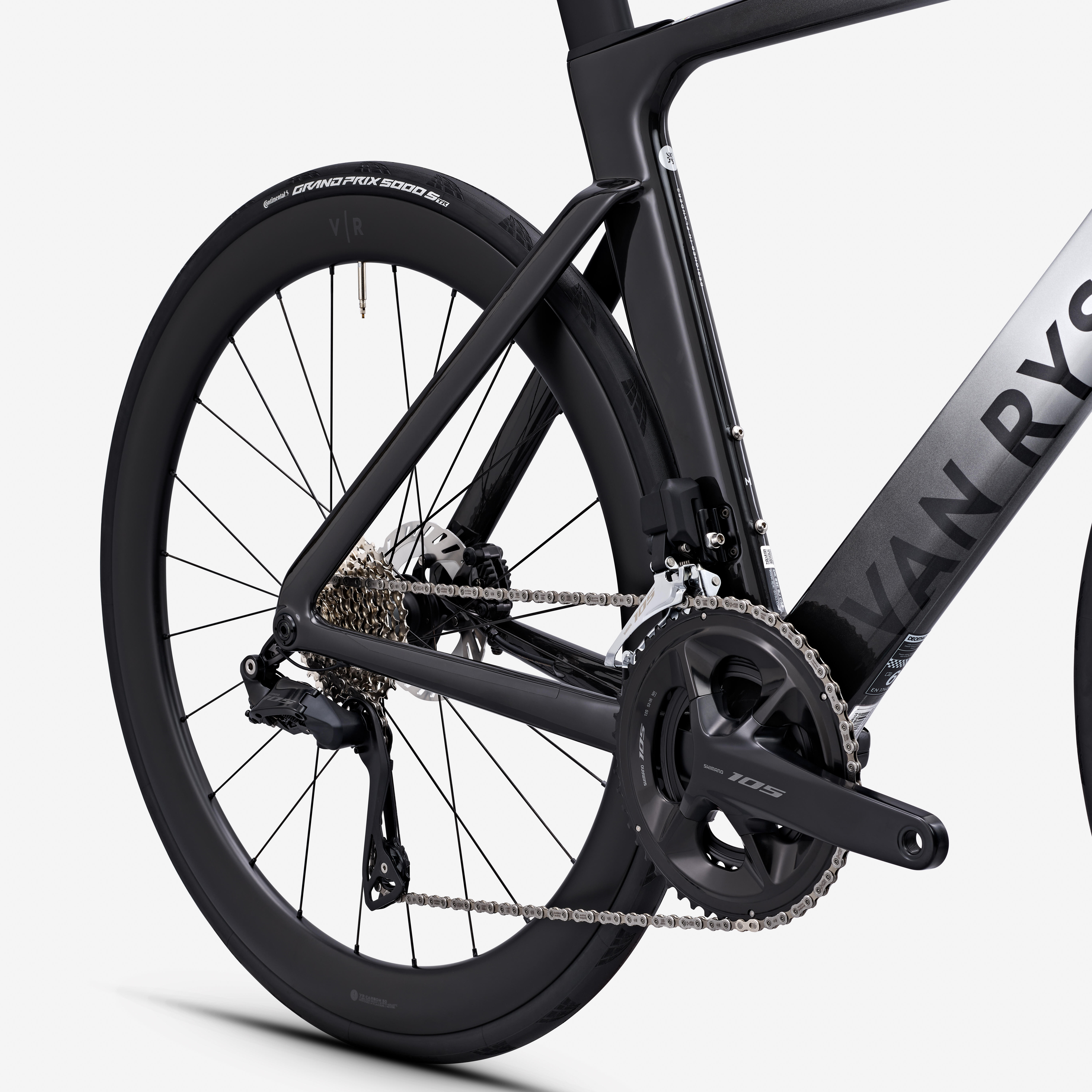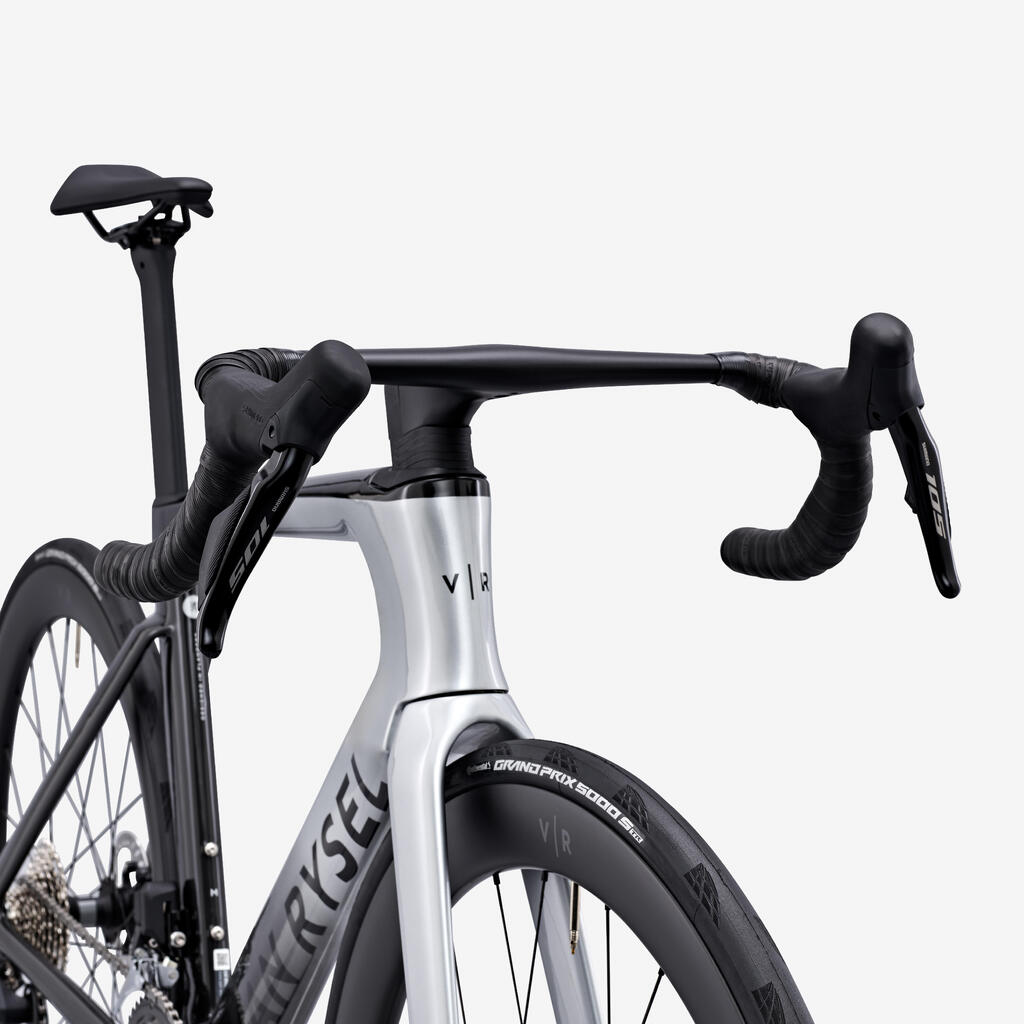 Kombinacija DEDA x VR RCR-F za optimizacijo aerodinamike, togosti in ergonomije. Vložki Ergo drops za boljši oprijem na kapah krmila.Vključeno je držalo za GPS kolesarski števec - združljivo z Garminom, Wahoo in Brytonom. Možnost namestitve triatlonskih podaljškov VR x Deda. Širina krmila in dolžina stebla sta odvisni od velikosti okvirja: XXS 70-400