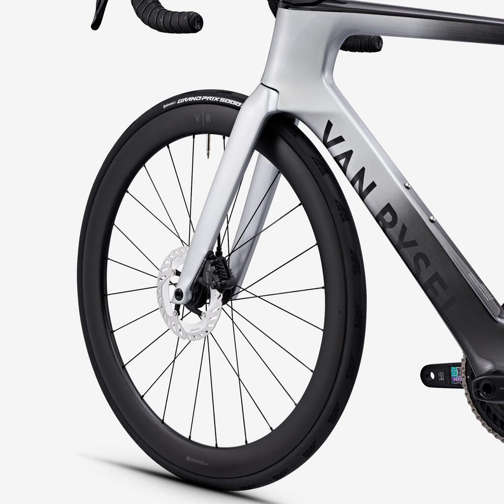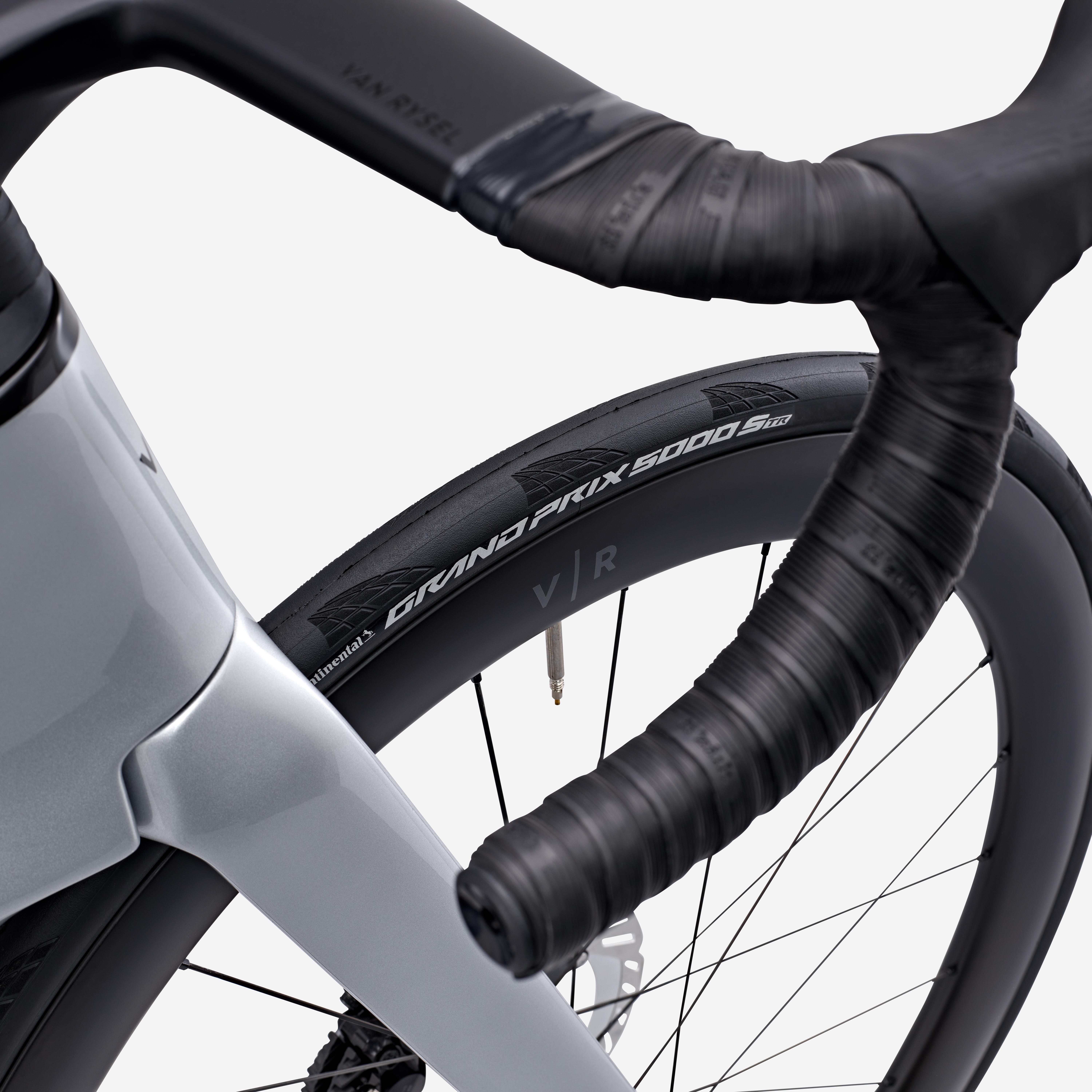 Zadaj je pnevmatika GP 5000S TR, 28-profilna. Prednja pnevmatika Continental Aero 111 TLR 26 mm.