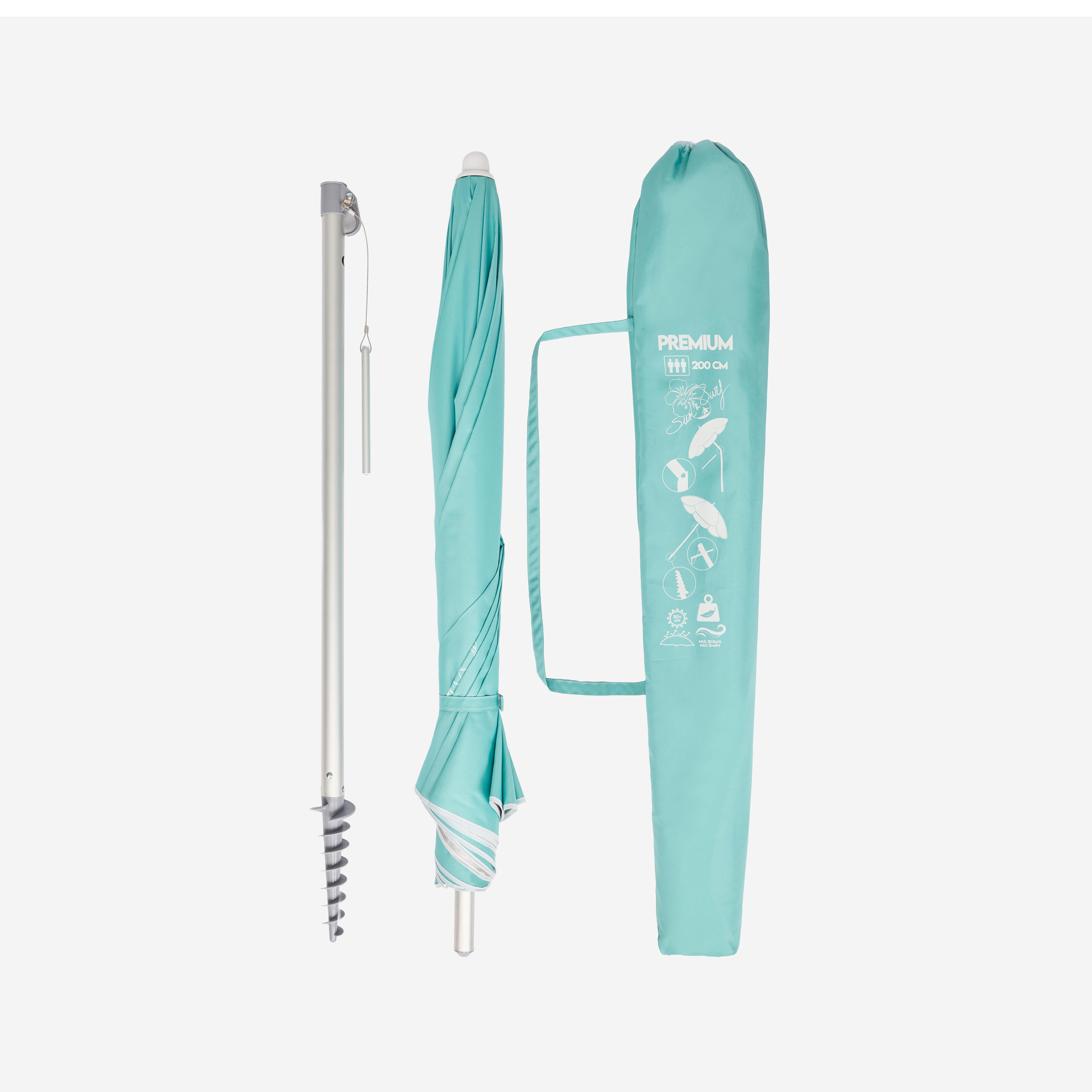 Premer: 200 cm. Premer droga (spodnji del) => 3 cm. Premer droga (zgornji del) => 2,5 cm. Zagotavlja senco za do 3 odrasle osebe.