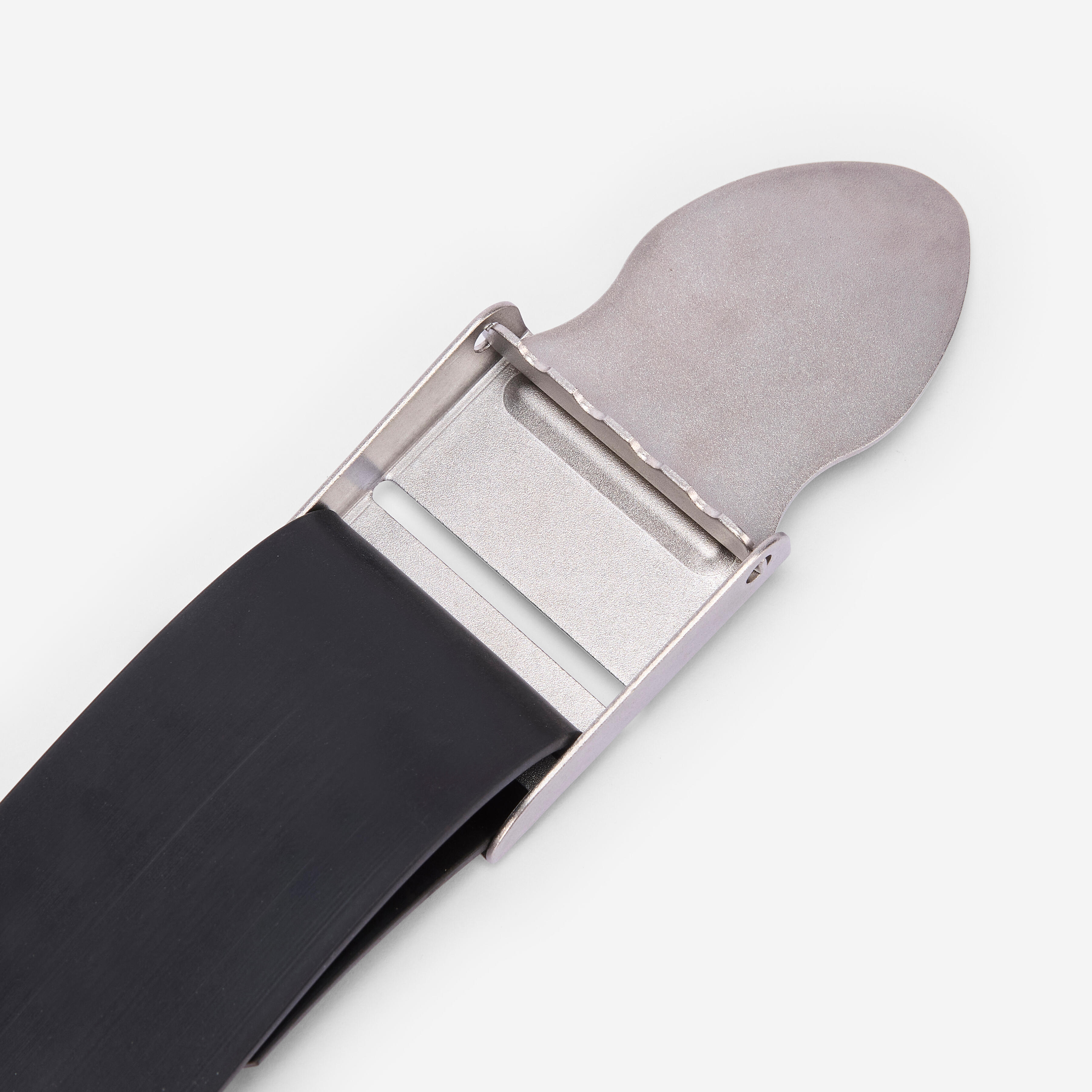 Mehek gumijast pas. Zaponka iz nerjavečega jekla. Dolžina 1,5, m, širina 50 mm, debelina 2,7 mm.