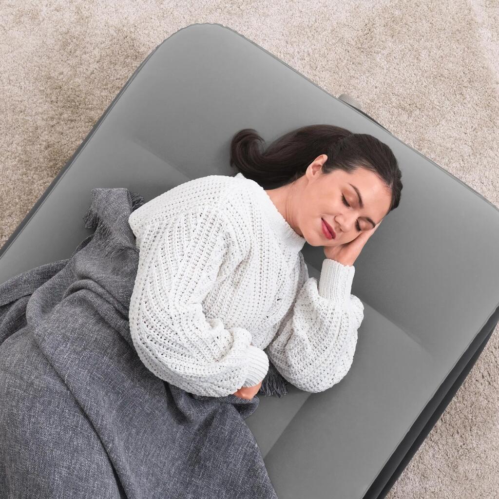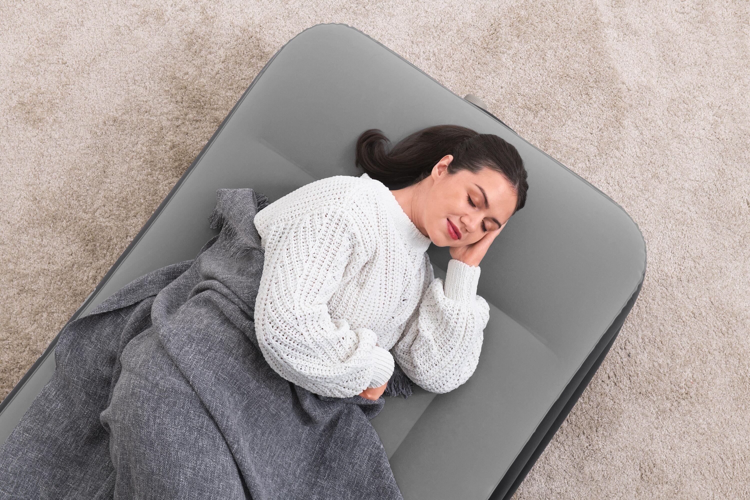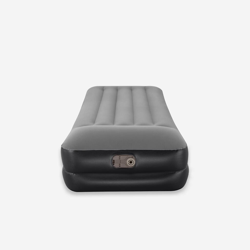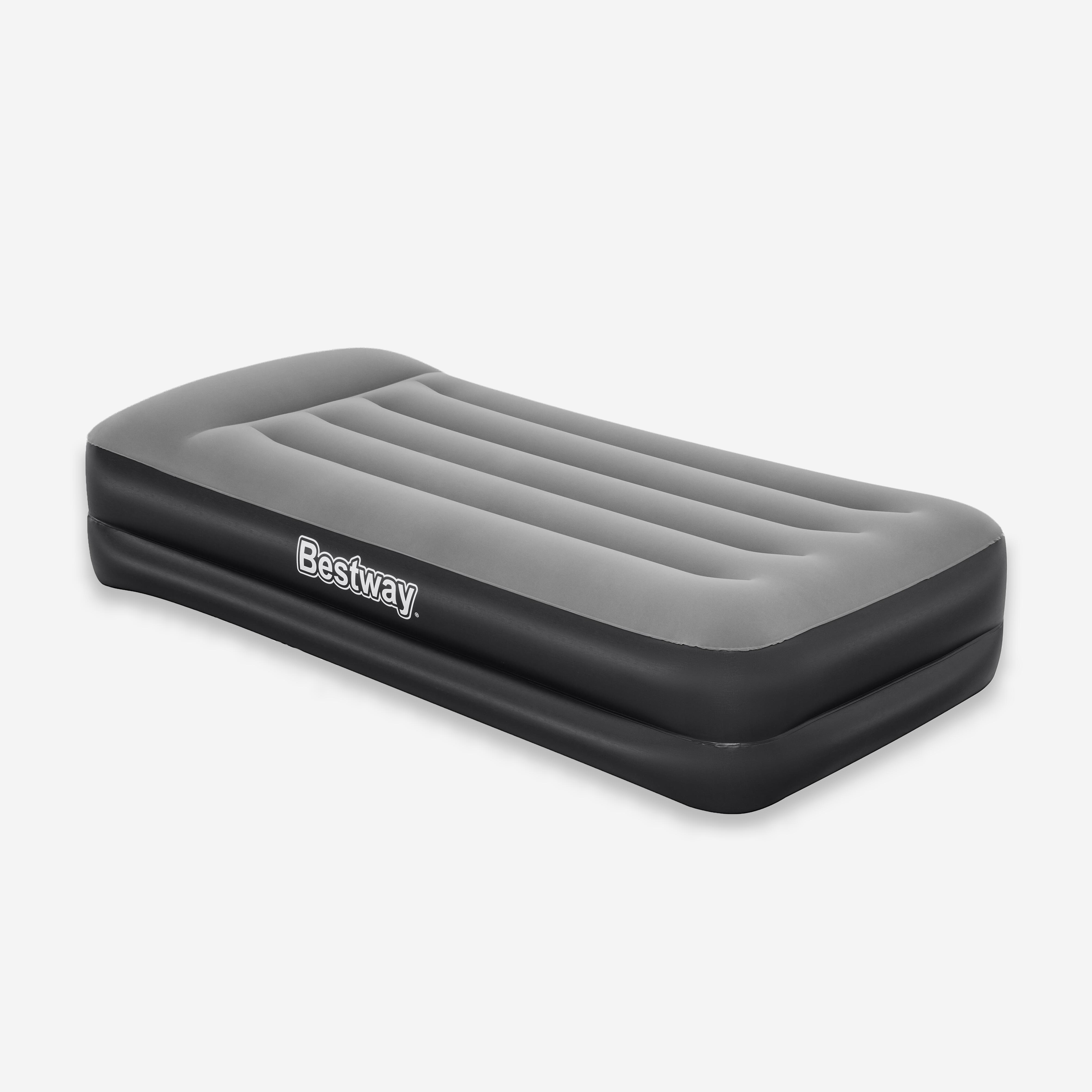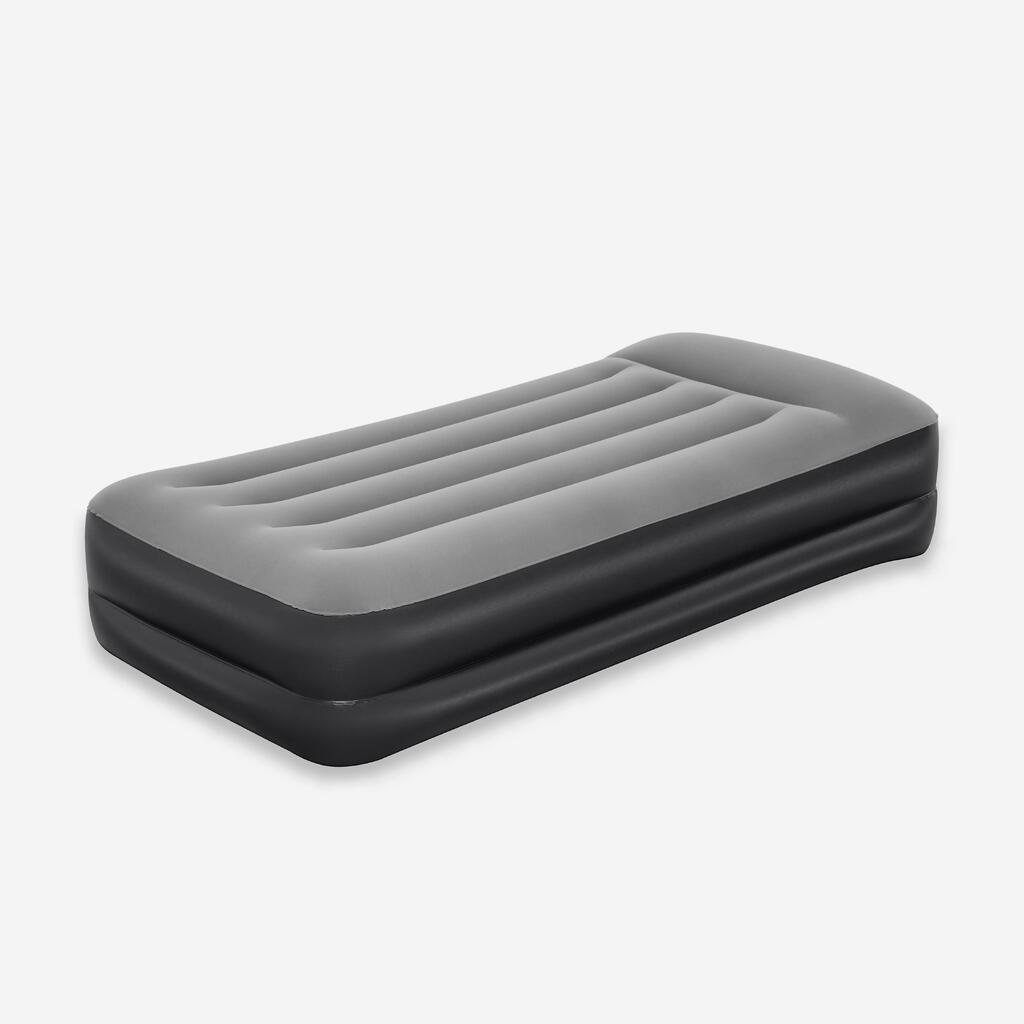 Vsebina 1 napihljiva blazina, 1 vreča za shranjevanje, 1 zaplata za popravila. Napihljiva blazina za 1 odraslo osebo. Mere: 191 x 97 cm. Višina blazine (z vzglavnikom): 46 cm. Višina blazine (brez vzglavnika): 38 cm. Vgrajena električna tlačilka (220–240 V) napolni blazino v 3 minutah.
