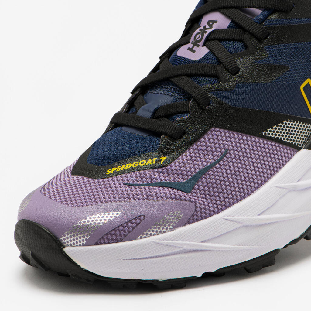 Z značilno mešanico dokazanega blaženja HOKA z agresivnim oprijemom in ultra lahkimi materiali model Speedgoat 7 je ustvarjen za osvajanje poti.