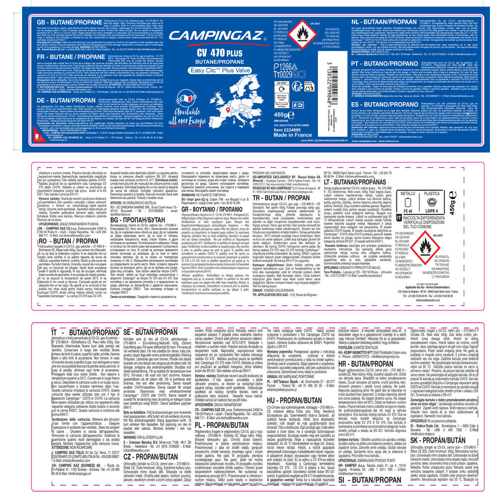 Kartuša je zasnovana le za uporabo s kuhalniki znamke Campingaz (Bleuet, Twister, komplet 100S, Camping Kitchen CV, Party Grill itd.).