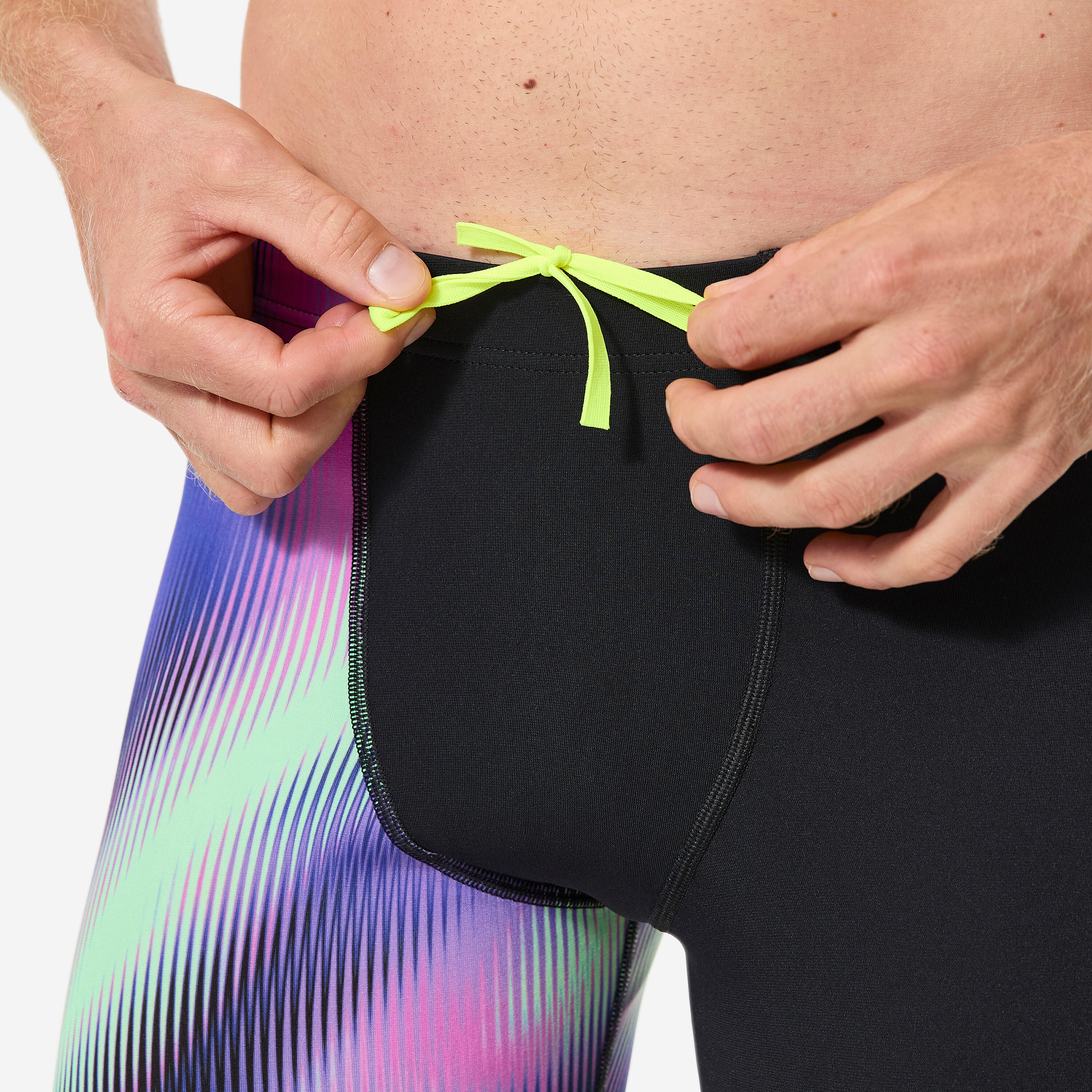 Udobne kopalke, ki se hitro sušijo. So zelo odporne na klor. Za popolno prileganje je na voljo vrvica.