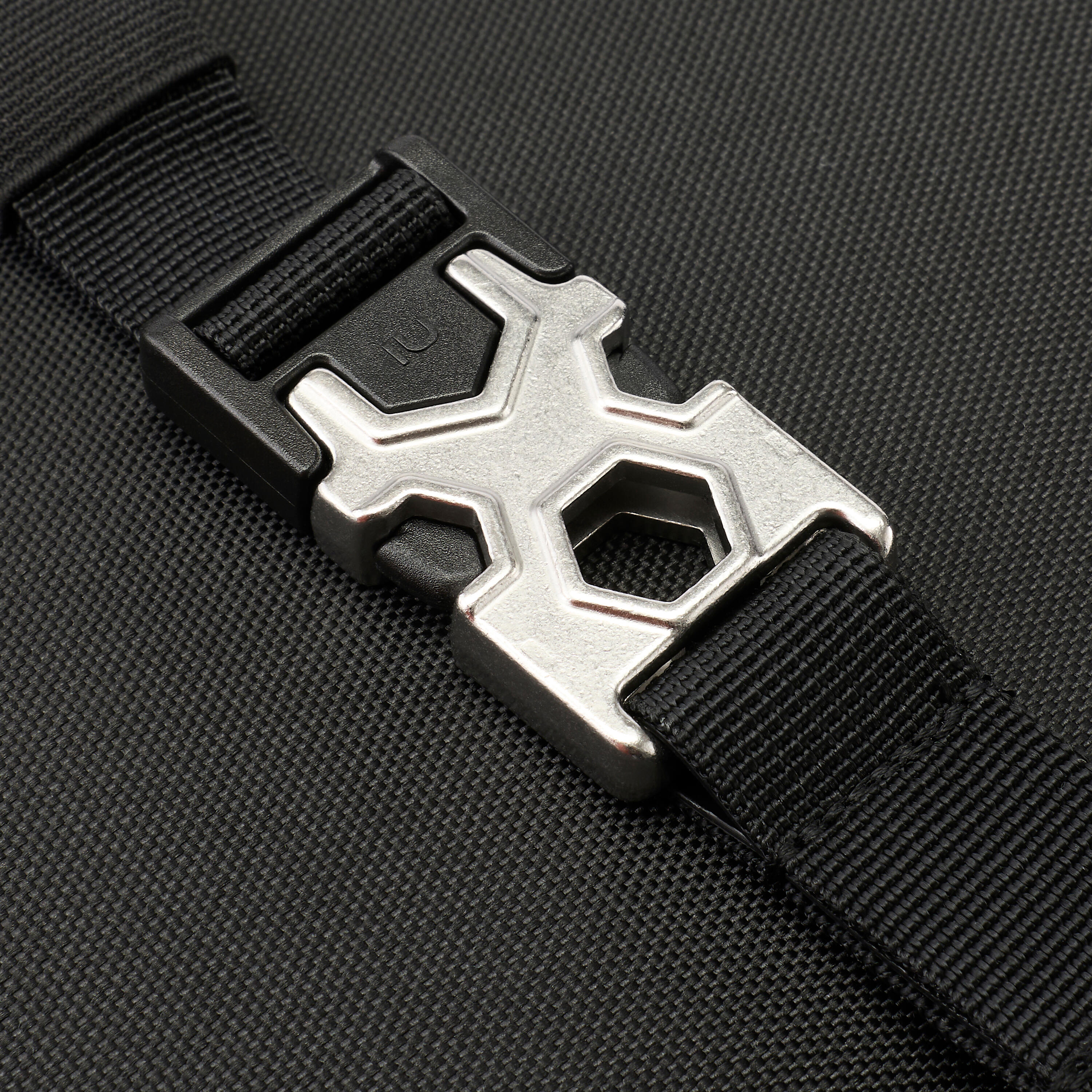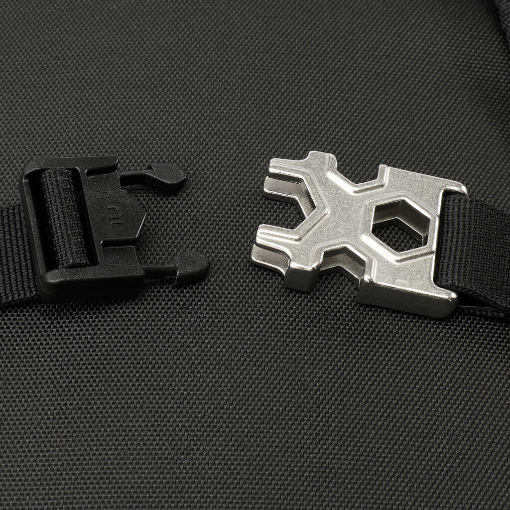 Zaponka na prsnem pasu vsebuje odtise 3 matic za rolko: glavni vijak, os kolesa in osnovno ploščo. V nahrbtniku je majhen izvijač/imbus ključ.