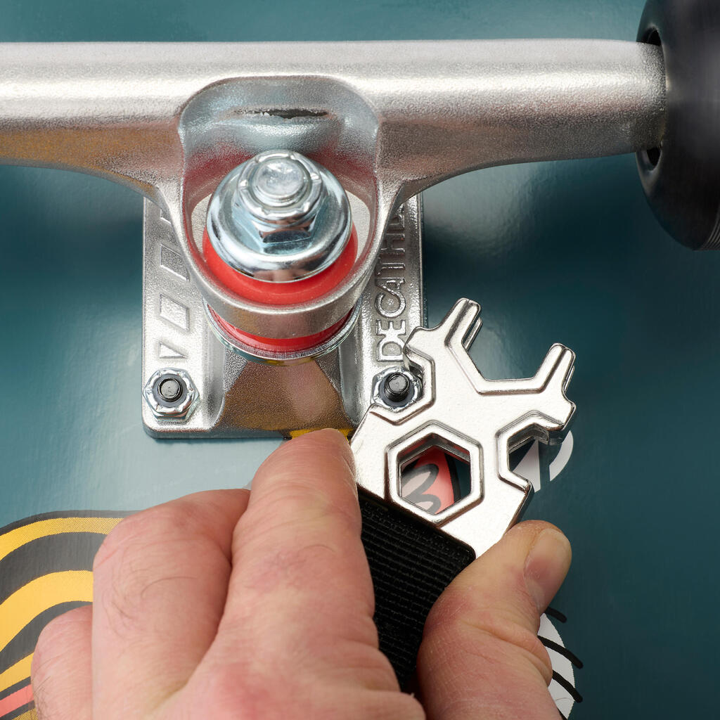 Decathlon Skateboarding je prišel na idejo o integraciji orodja za rolko, tako da lahko v treningih uživate brez težav, ko morate nekaj prilagoditi ali zamenjati deske ...