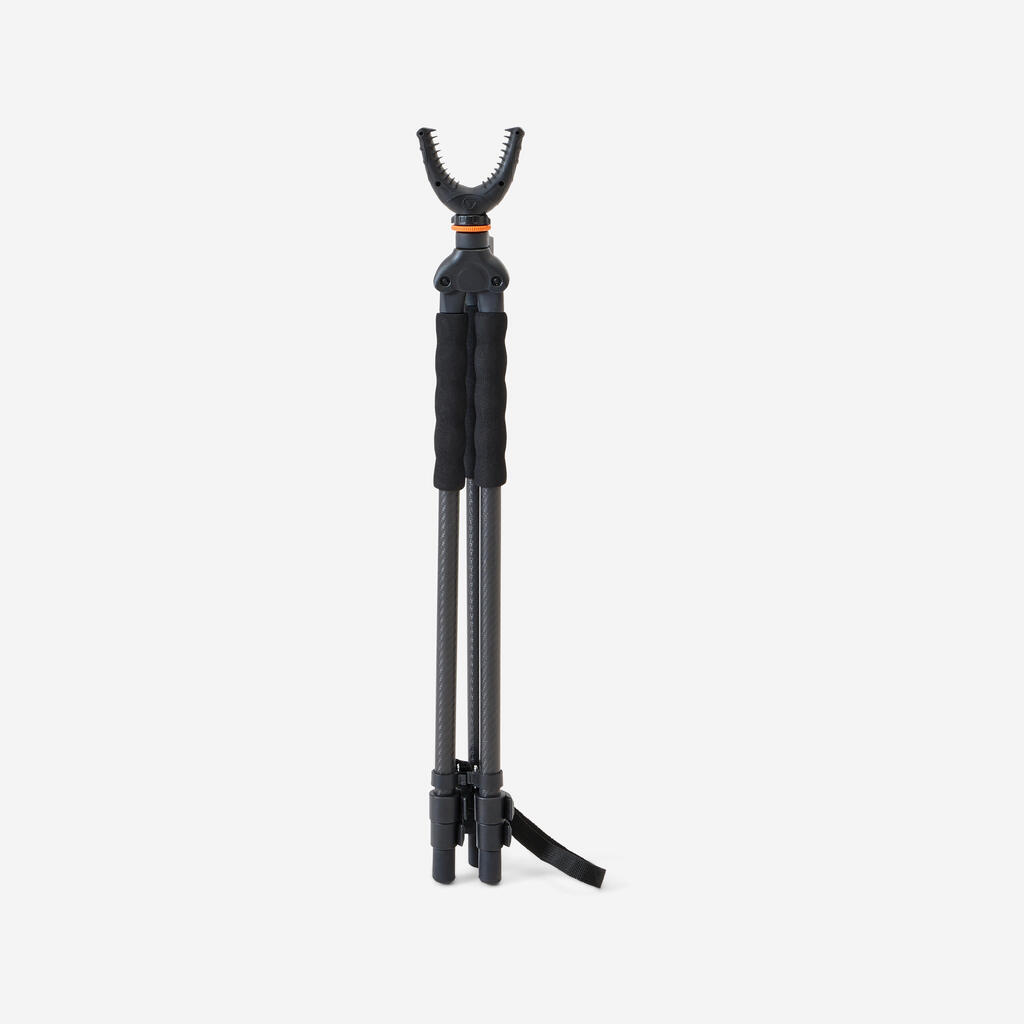 Premična noga (tako kot drugi dve nogi) je enostavna za uporabo zaradi oblikovanega penastega ročaja na vrhu.Noge so izdelane iz nedrseče gume za stabilnost med streljanjem.Nenazadnje, da cev orožja ostane popolnoma na mestu, je opora v obliki črke V izdelana iz tankih gumijastih trakov.Upoštevajte, da se stojalo vrti tudi za 360°, tako da lahko streljate iz katerega koli kota gledanja, ne da bi morali palico prestavljati.