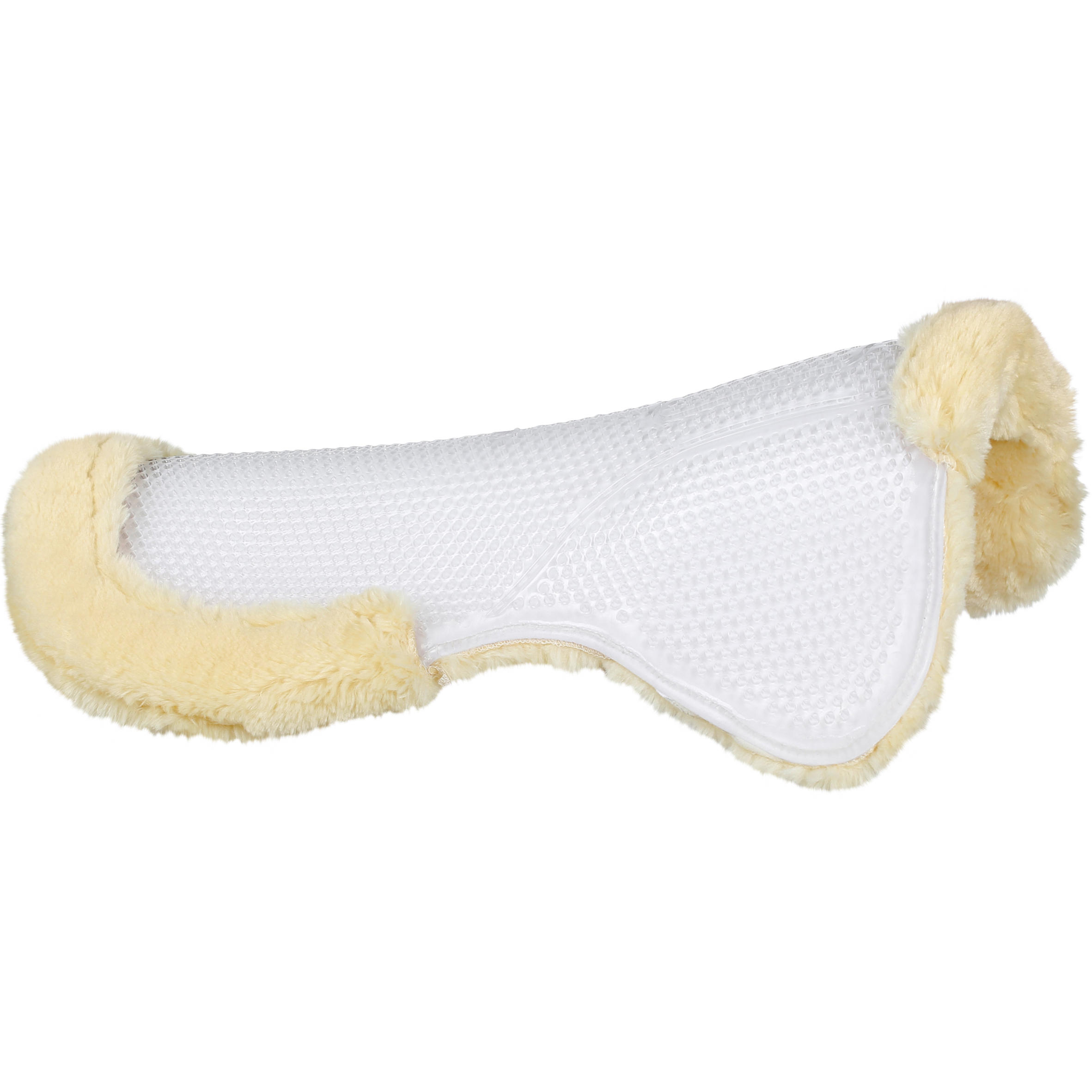 Podloga je izdelana iz vrhunske gel osnove in mehke sintetične ovčje kože. Poleg tega odprtine po celotni podlogi zagotavljajo odlično zračnost med jahanjem in po njem.