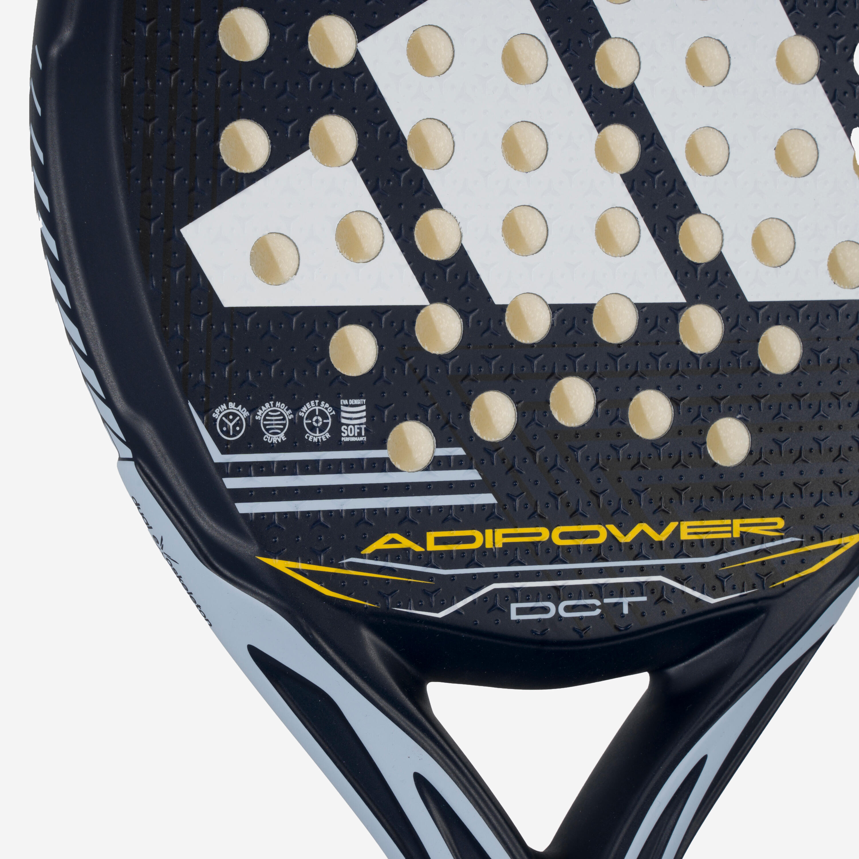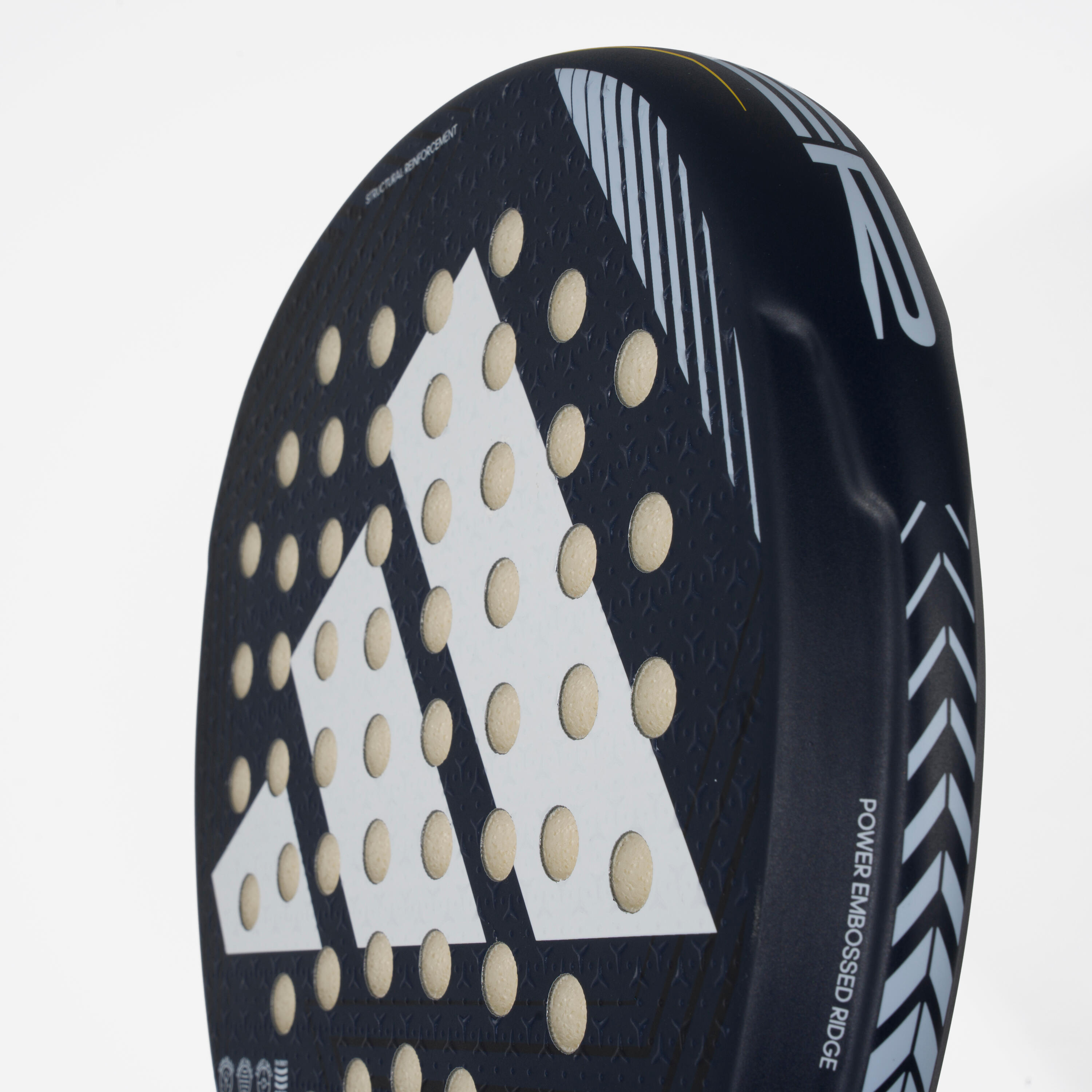Strateško razporejene luknje olajšajo ustvarjanje spina pri udarcih ter izboljšujejo splošno vzdržljivost glave loparja.