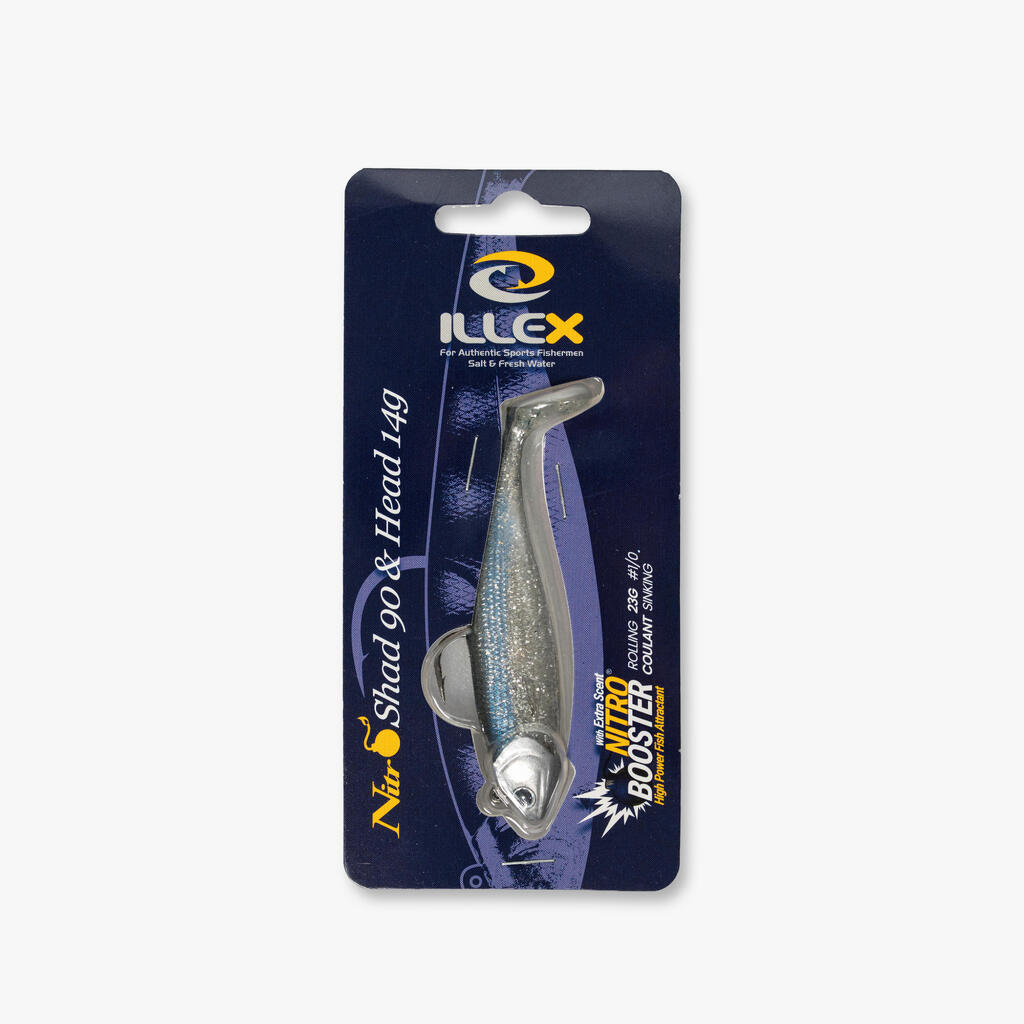 Komplet NITROSHAD 90 14 g KIT združuje 90 mm mehko vabo s 14 g jig glavo. Idealno za ostriže, ščuke in smuče, zagotavlja realistično plavanje in privlačno gibanje.