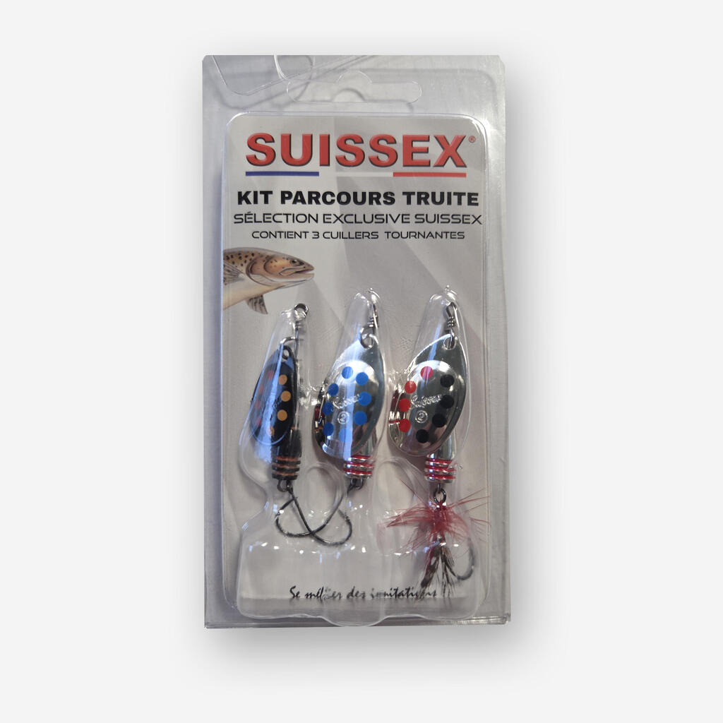 Komplet žlic Suissex Special Trout Spoon vsebuje izbor kovinskih žlic različnih velikosti in barv.Idealno za učinkovit ribolov postrvi v jezerih in rekah.