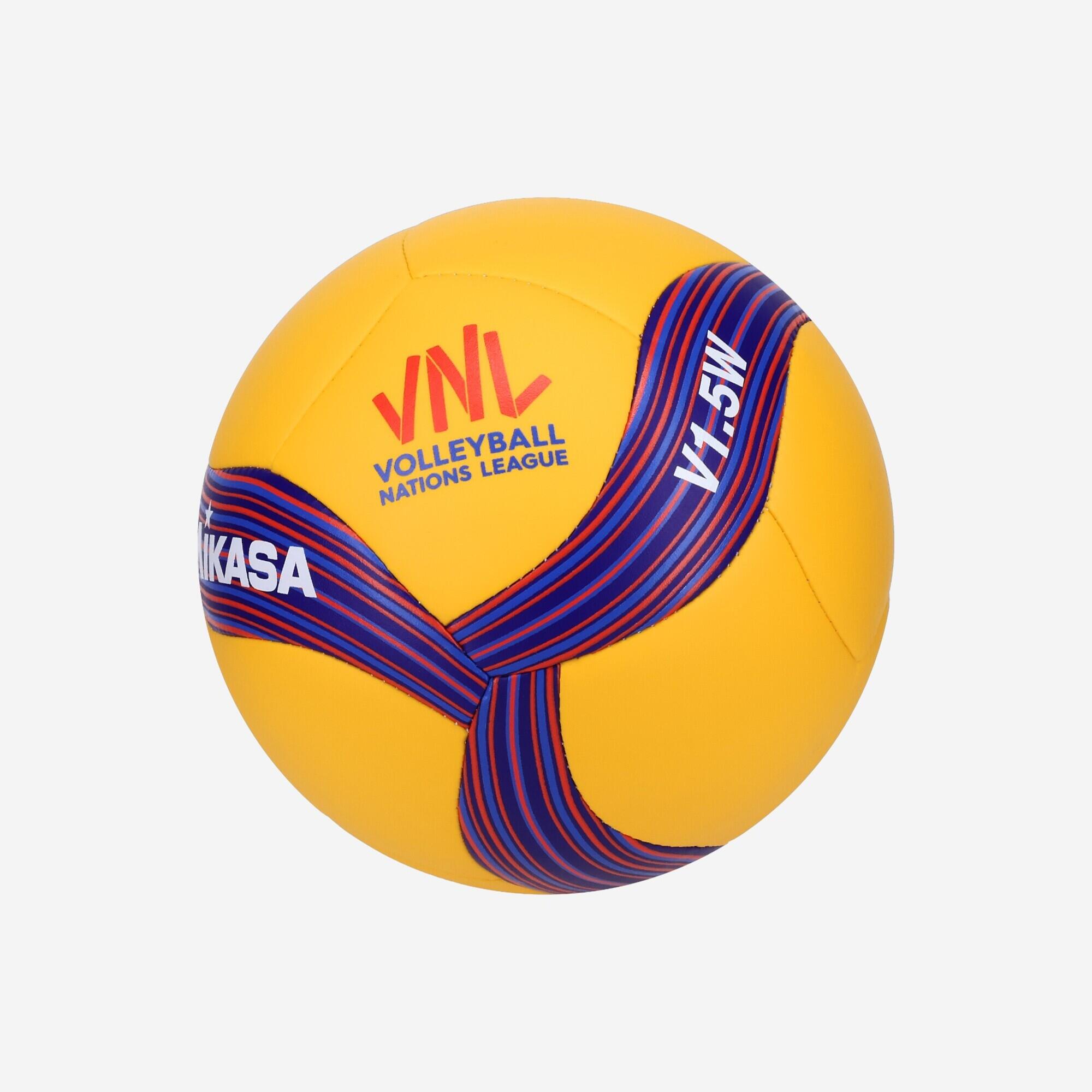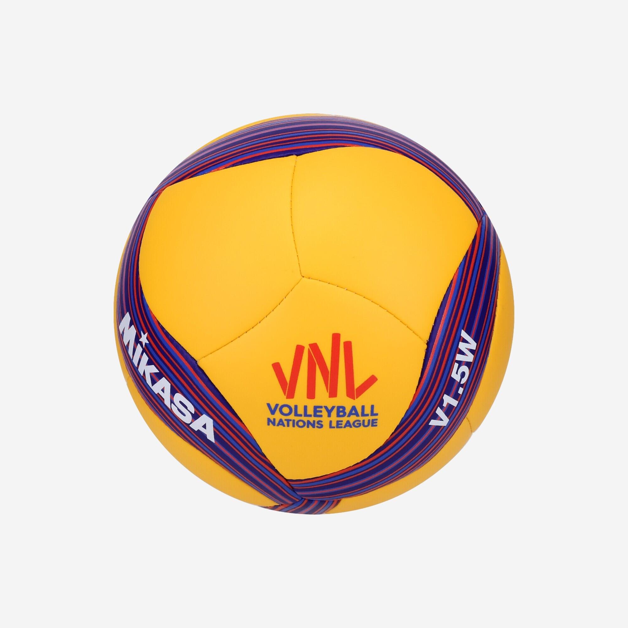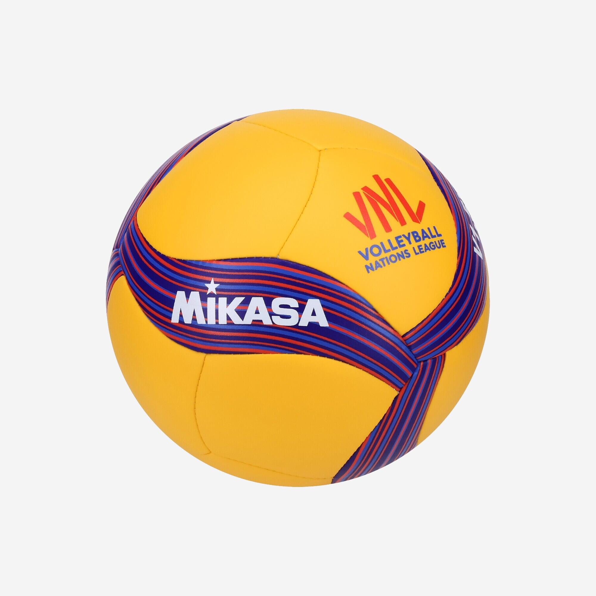 Žoga MIKASA V1.5W je mini žoga z logotipom in dizajnom VNL, ustvarjena kot spominska maskota za navijače in igralce odbojke.
