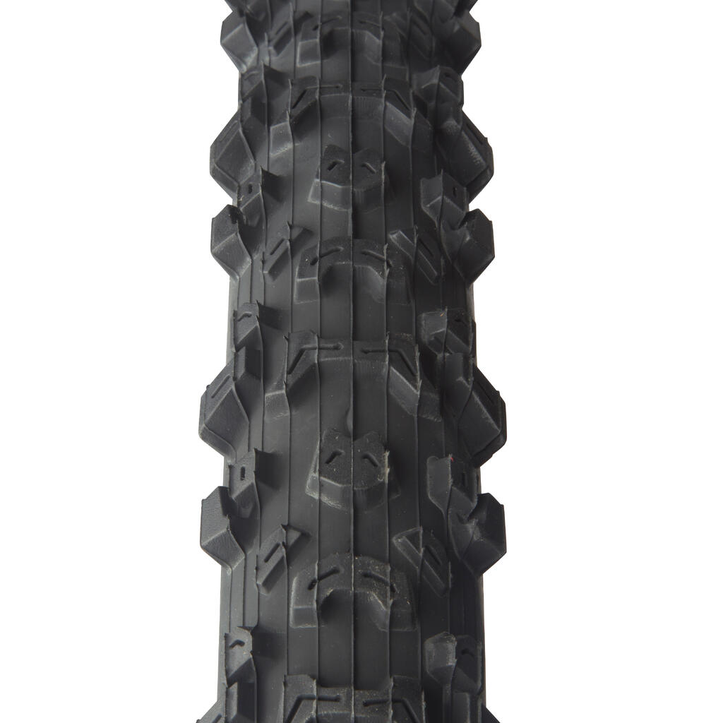Najprej odstranite kolo in spustite zrak iz pnevmatike. Pritisnite na bočnice pnevmatike, da jih odstranite z platišča. Uporabite Decathlonovo orodje za pnevmatike (ref. 8930710). Vstavite enega pod pnevmatiko, da jo izvlečete. Pritrdite ga na napero in ponovite postopek, da sprostite eno celotno stran pnevmatike.