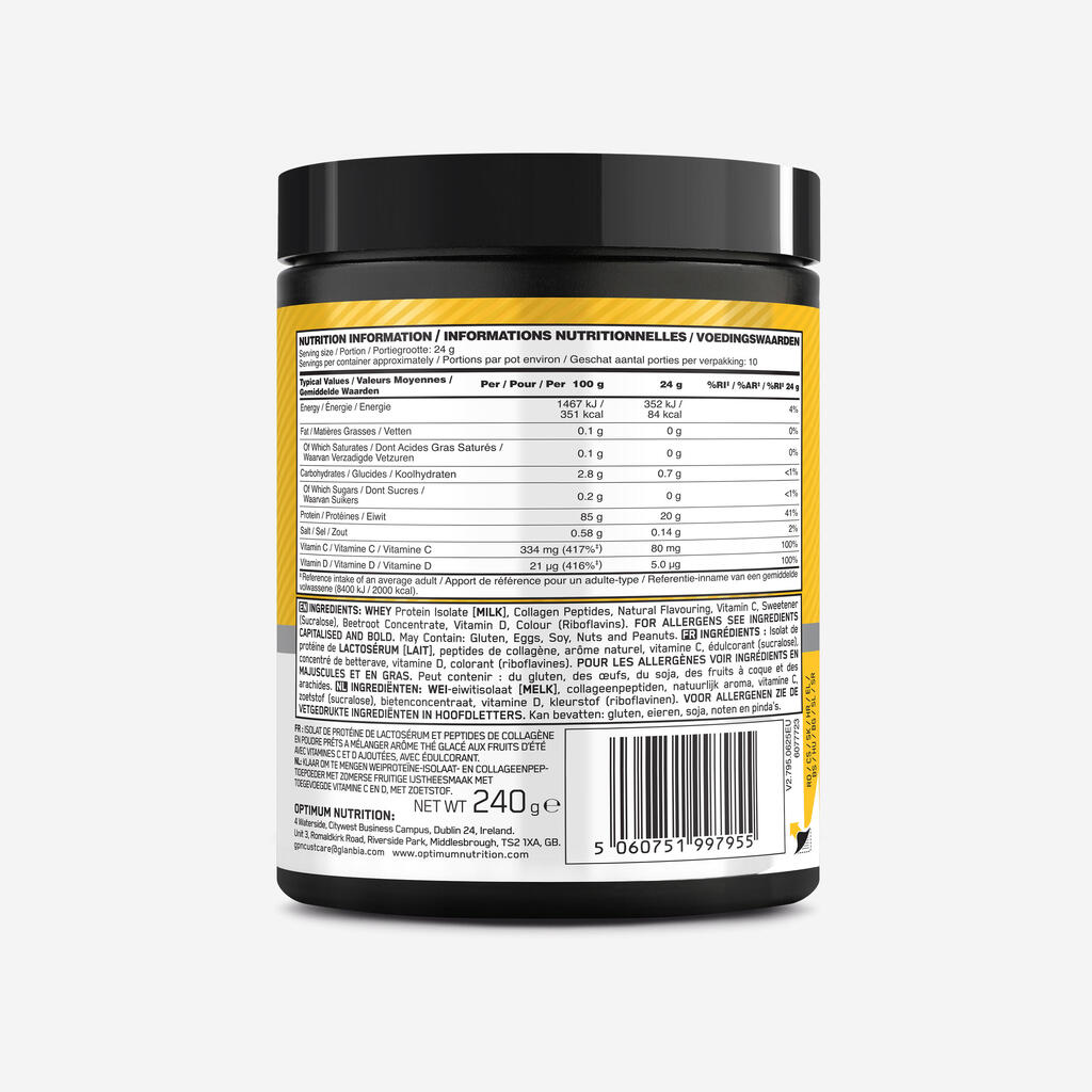 Gre za kakovostno beljakovinsko dopolnilo, ki združuje dva različna vira beljakovin – izolat sirotkinih beljakovin in kolagenske peptide – za podporo mišicam in sklepom.