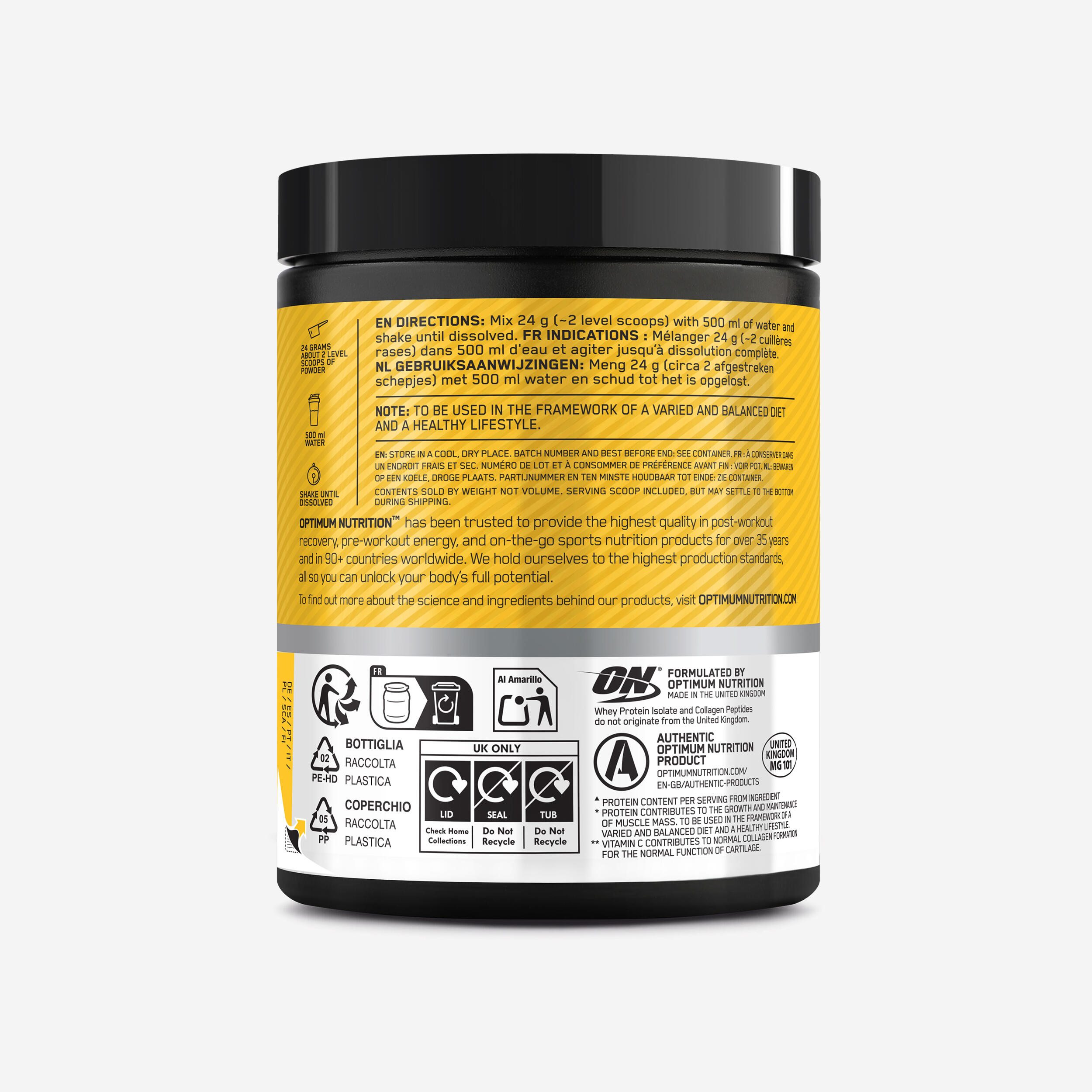 Zmešajte 24 g (2 merici) praška v 500 ml vode in mešajte, dokler se popolnoma ne raztopi.