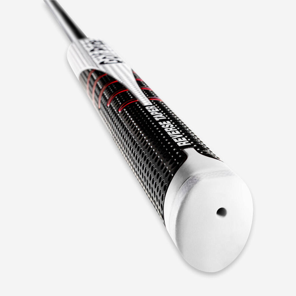 Reverse taper oblika, ožja v zgornjem delu in širša v spodnjem. To optimizira koordinacijo obeh rok med udarcem in tako spodbuja bolj kvadraten obraz palice ob udarcu.*