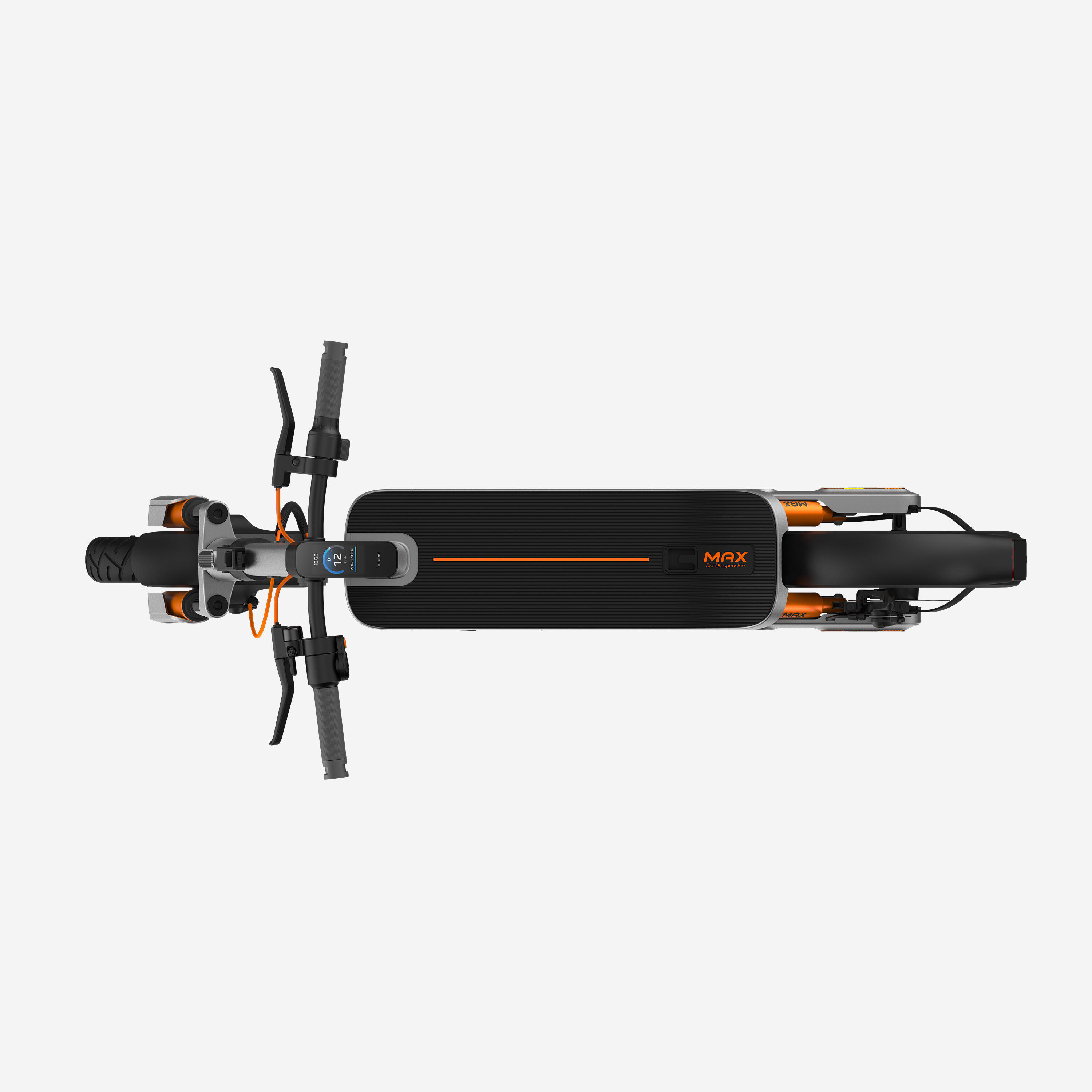 Glavna inovacija v različici Max: 45 mm hidravlične sprednje vilice, tehnologija, ki izhaja iz motornih koles. V kombinaciji z dvojnim zadnjim amortizerjem ponuja gladko vožnjo in absorbira tudi najhujše luknje brez neprijetnega odbojnega učinka.