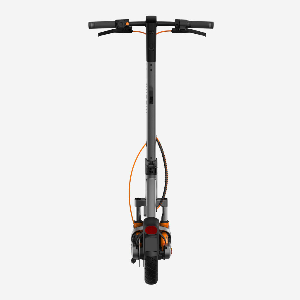 Nič več občutka utesnjenosti. Njegovo izjemno široko krmilo (60,6 cm) zagotavlja odlično smerno stabilnost, velika plošča (širine 19 cm) pa vam omogoča, da postavite noge eno ob drugo. Njegov okvir iz ogljikovega jekla je edini, ki je certificiran za obremenitev 130 kg.