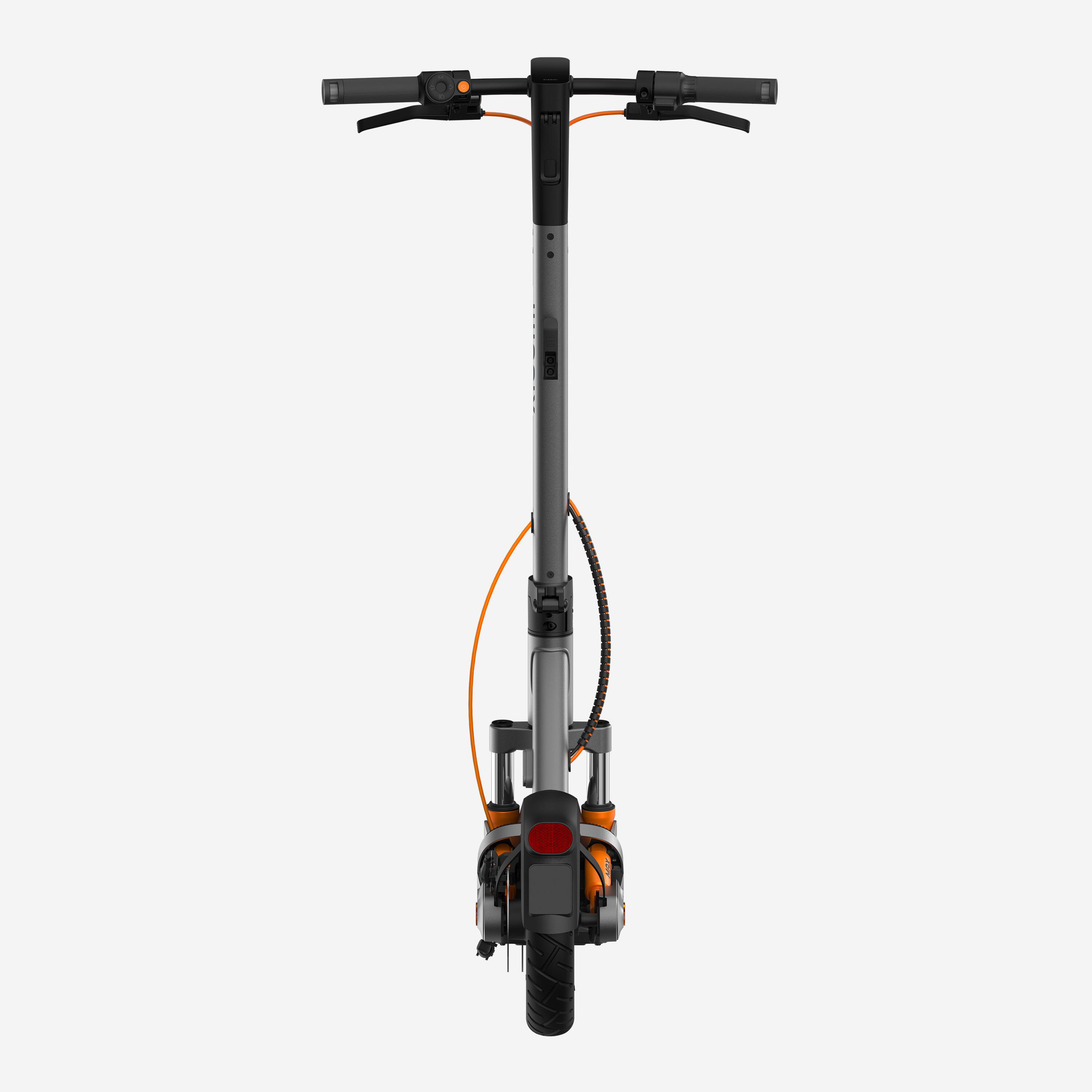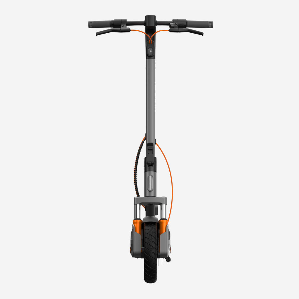 To je najvišja raven varnosti: dve kolutni zavori (spredaj in zadaj), ki zagotavljata ostro in natančno zaviranje. Skupna vodoodpornost je IPX6, kar ščiti celoten skiro pred močnimi brizgami vode in močnim dežjem.
