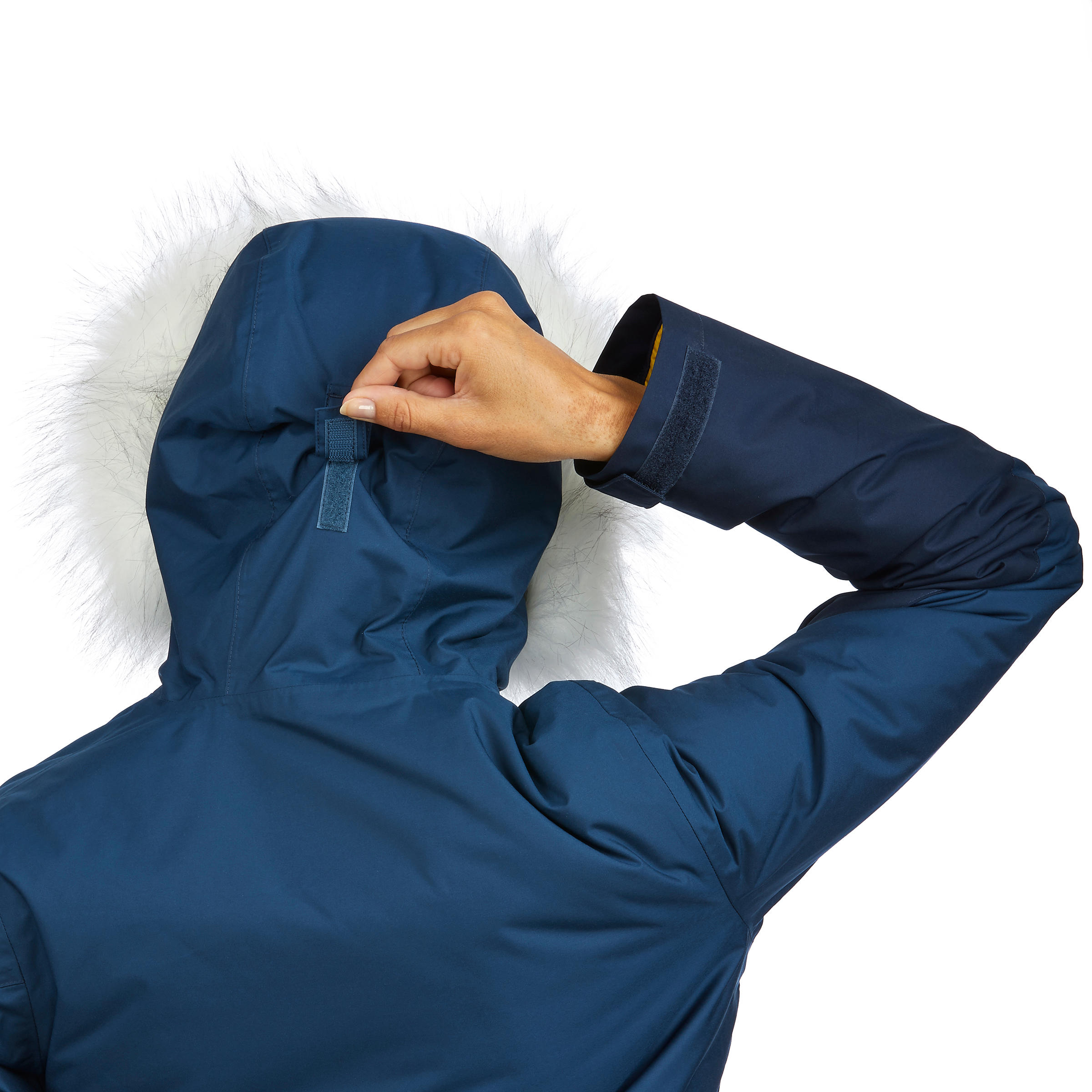 VodoodporenZatesnjeni šivi v predelu ram in vodoodporna kapuca.