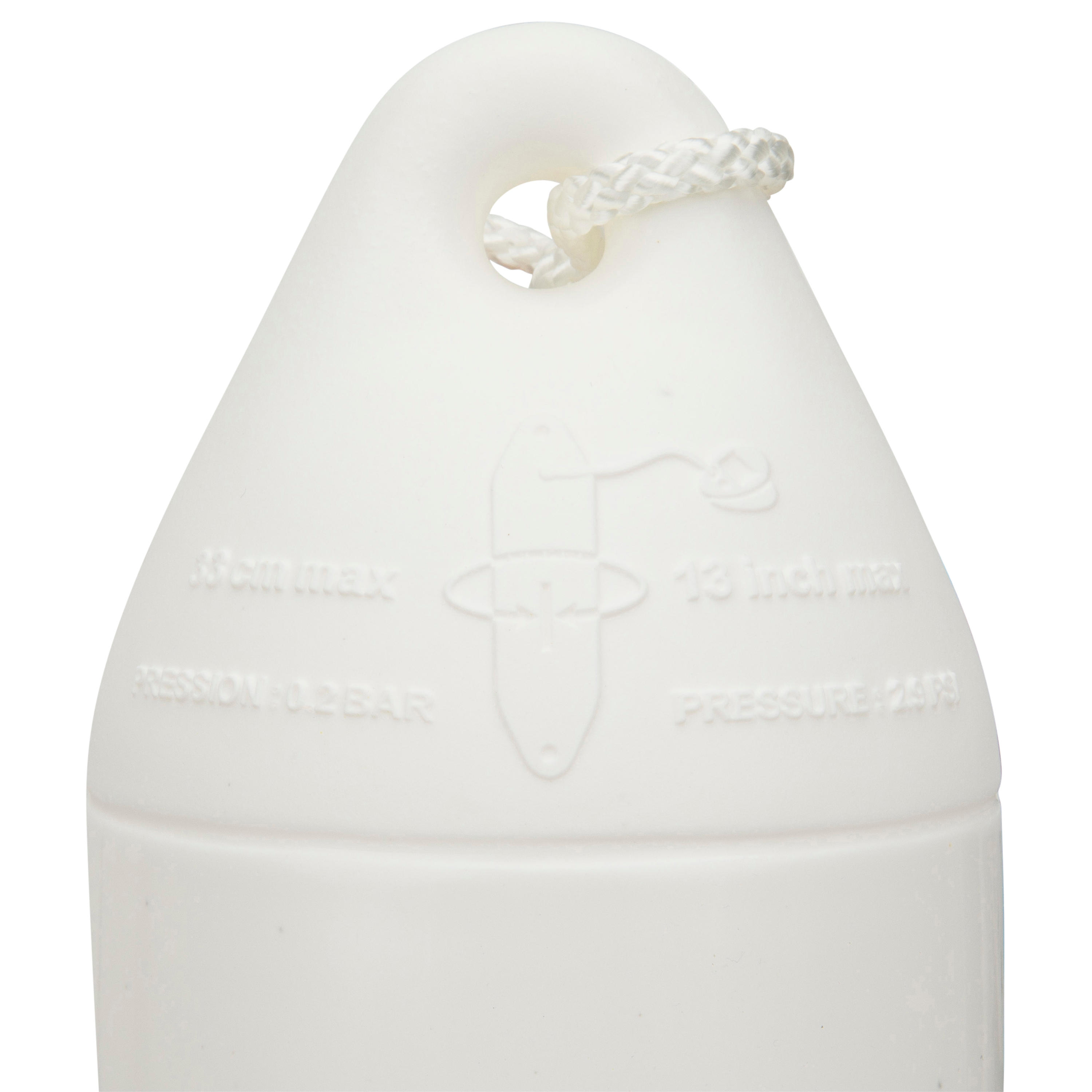 Napihljiv bokobran iz bleščečega PVC-ja je odporen na UV-žarke. Lahko ga uporabite vodoravno ali navpično. Zaradi oblike koncev PVC med strjevanjem odlično kroži od enega do drugega konca kalupa. Material je tako enakomerno porazdeljen po celem bokobranu. Tako poskrbi za optimalno blaženje ne glede na točko udarca na bokobranu.