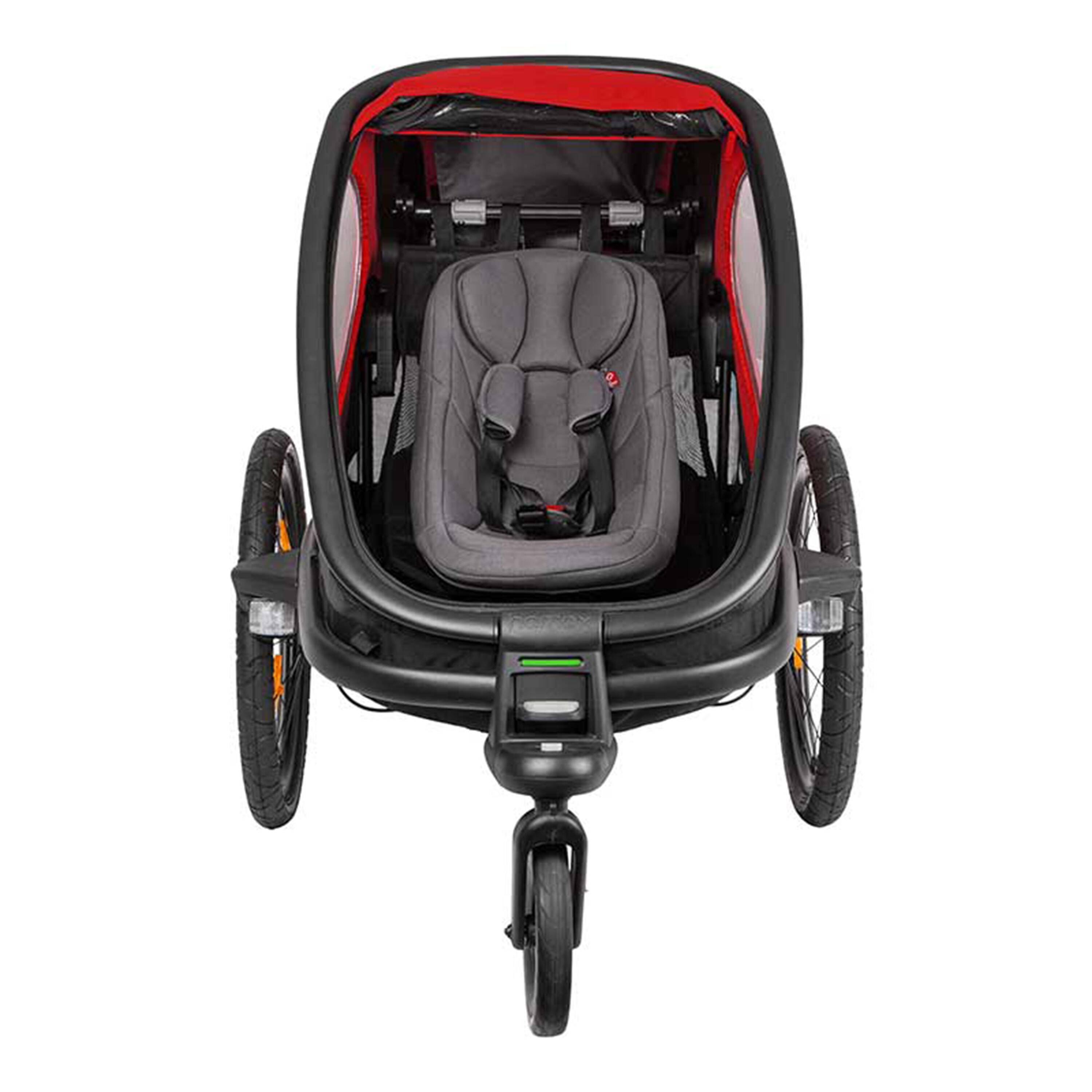 Sedež je zasnovan za prevažanje otroka, težkega do 10 kg in visokega do 75 cm v priklopniku.