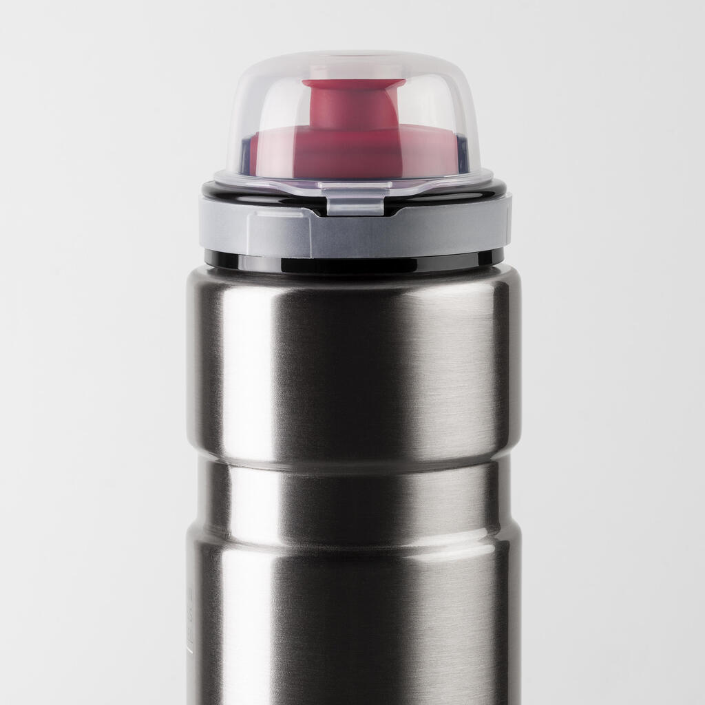 Dirkaška različica z mehkim gumijastim potisno vlečnim ventilom in zaščitnim pokrovčkom za kolesarjenje; ali preklopite na enodelni jekleni zračni pokrovček za pohodništvo in aktivnosti na prostem in lahko pijete neposredno iz telesa steklenice.